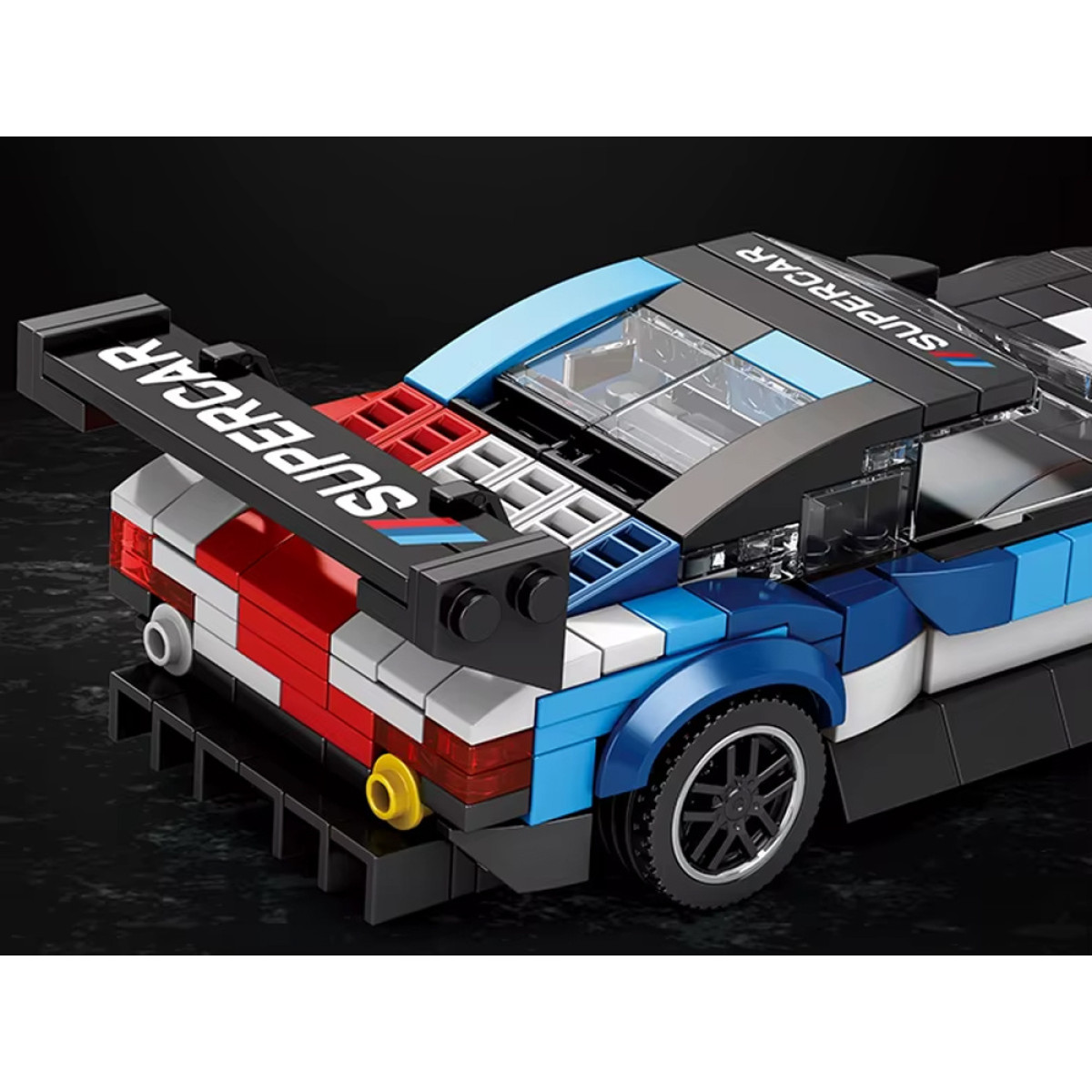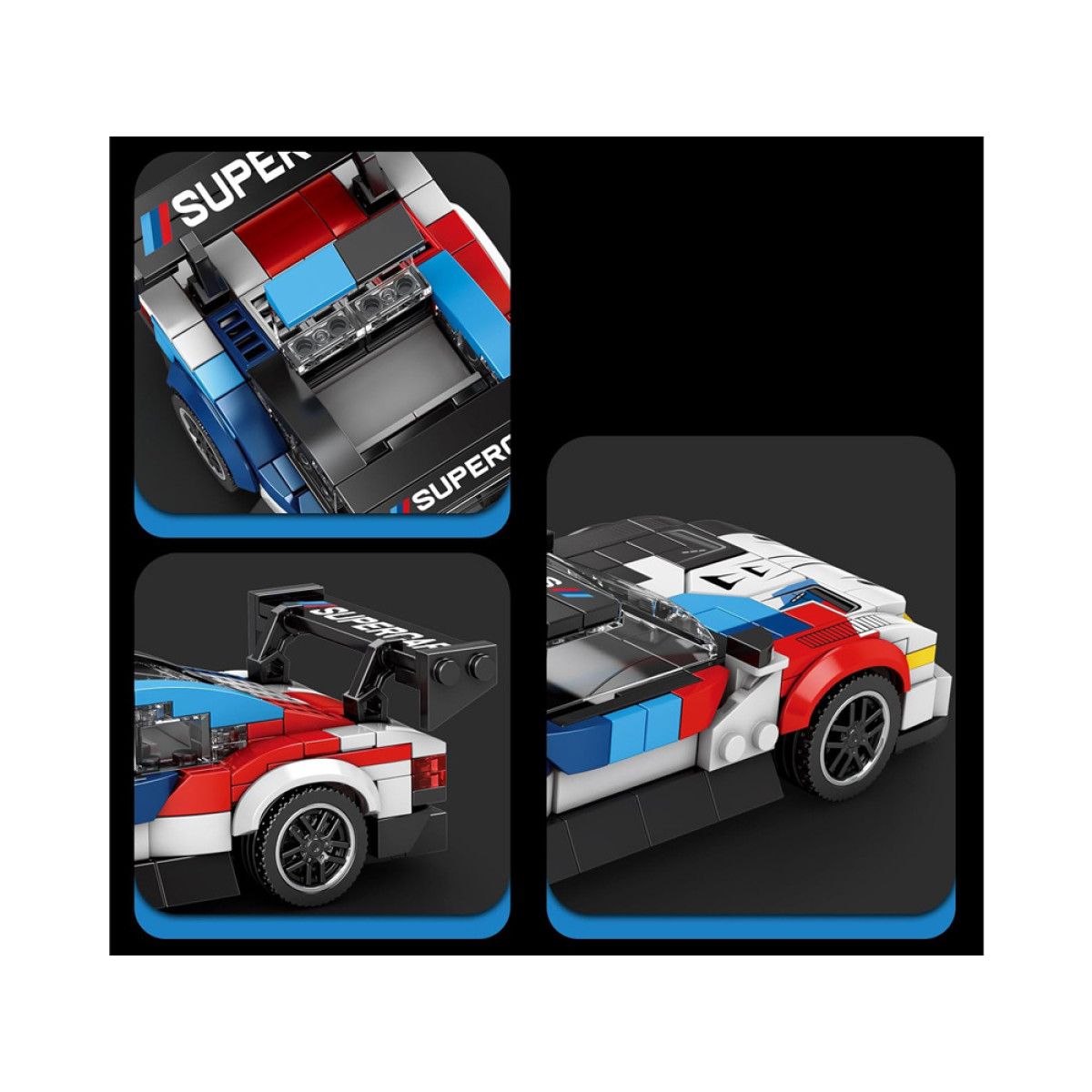Tehnilised klotsid – sinine-punane-must-valge-hall Superauto võidusõidumeister