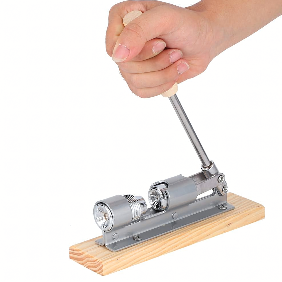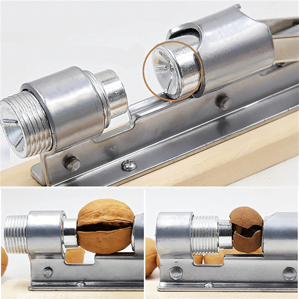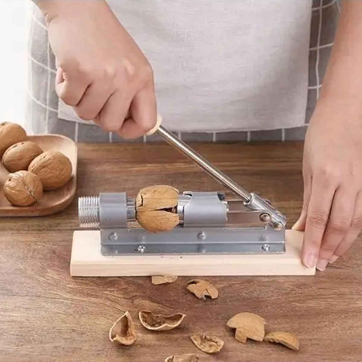 Tugev ja vastupidav pähklipurustaja on valmistatud kvaliteetsest terasest ja paigaldatud puidust alusele. Sobib ideaalselt erinevate pähklite purustamiseks, pakkudes kasutusmugavust ja efektiivsust.