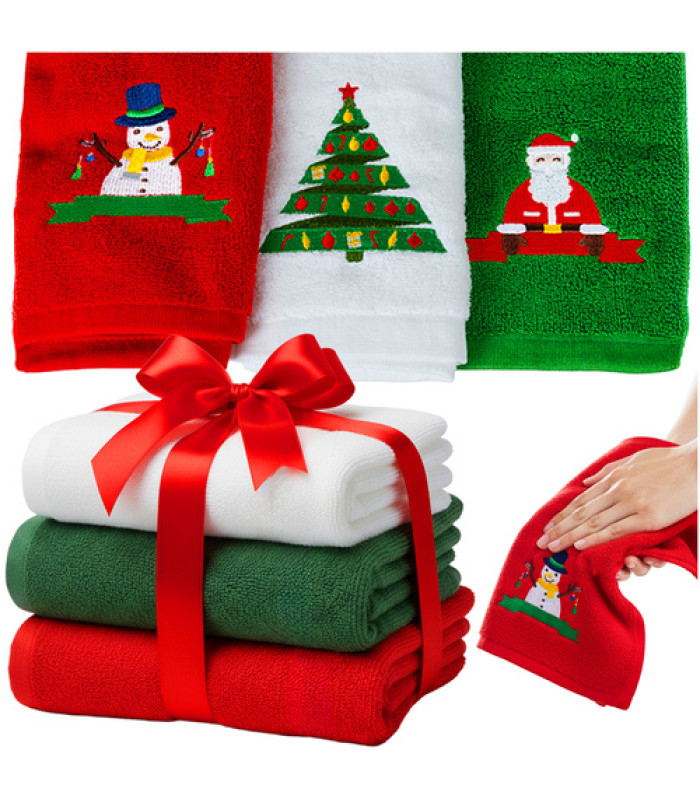 Pühaderätikud RUHHY 3 tk, puuvillased tikandiga: punane, roheline, valge 30x40 cm – praktiline komplekt, mis loob jõulumeeleolu!