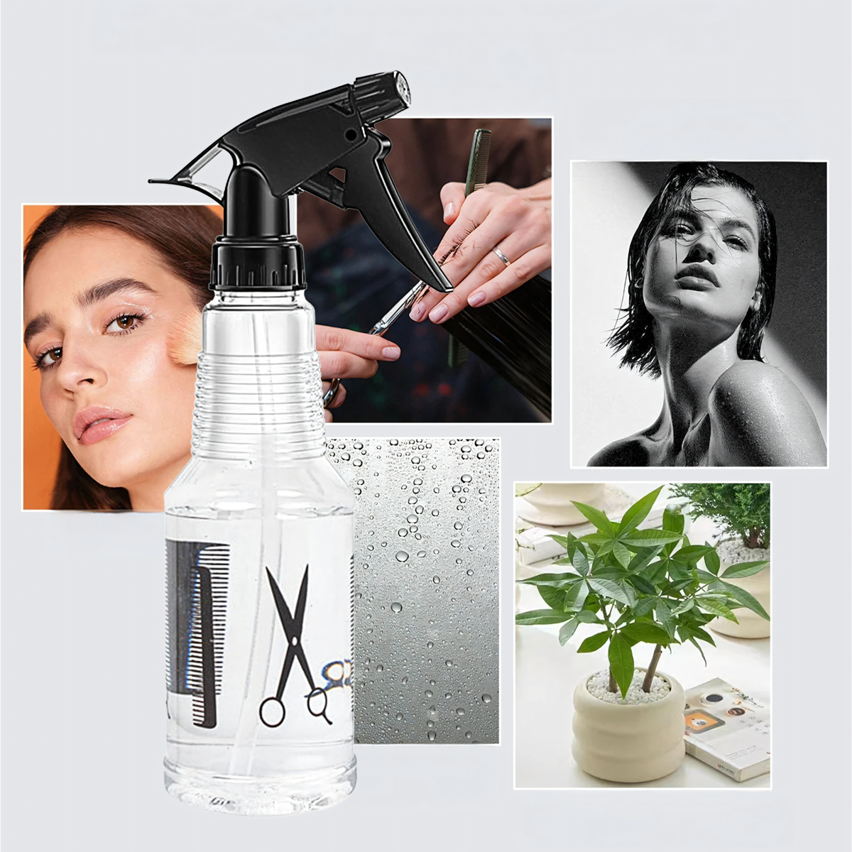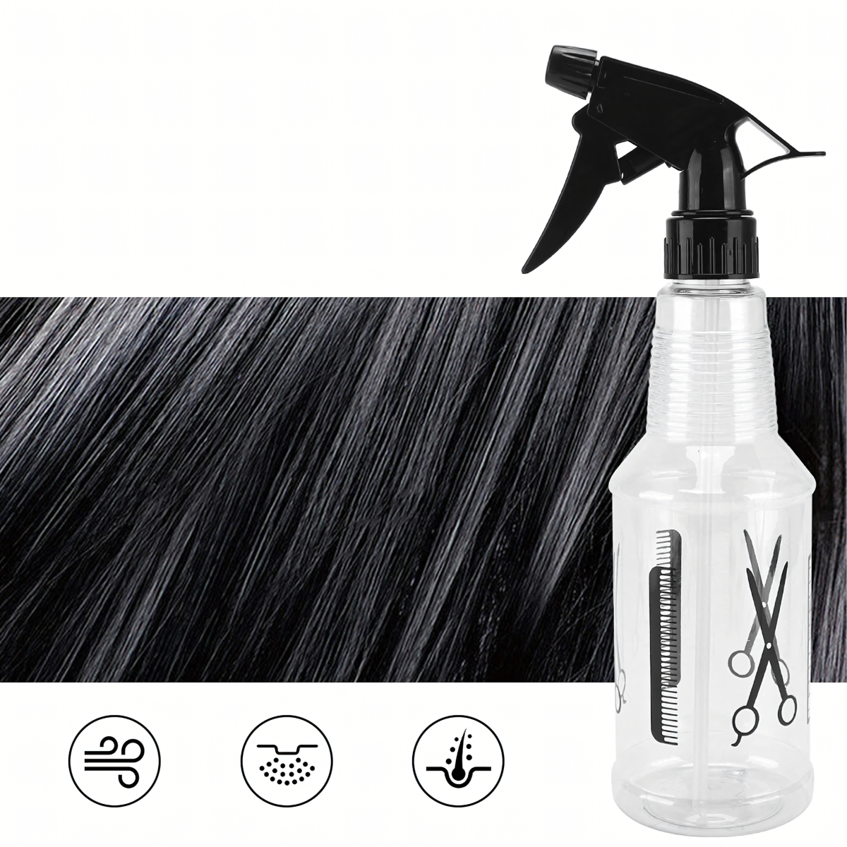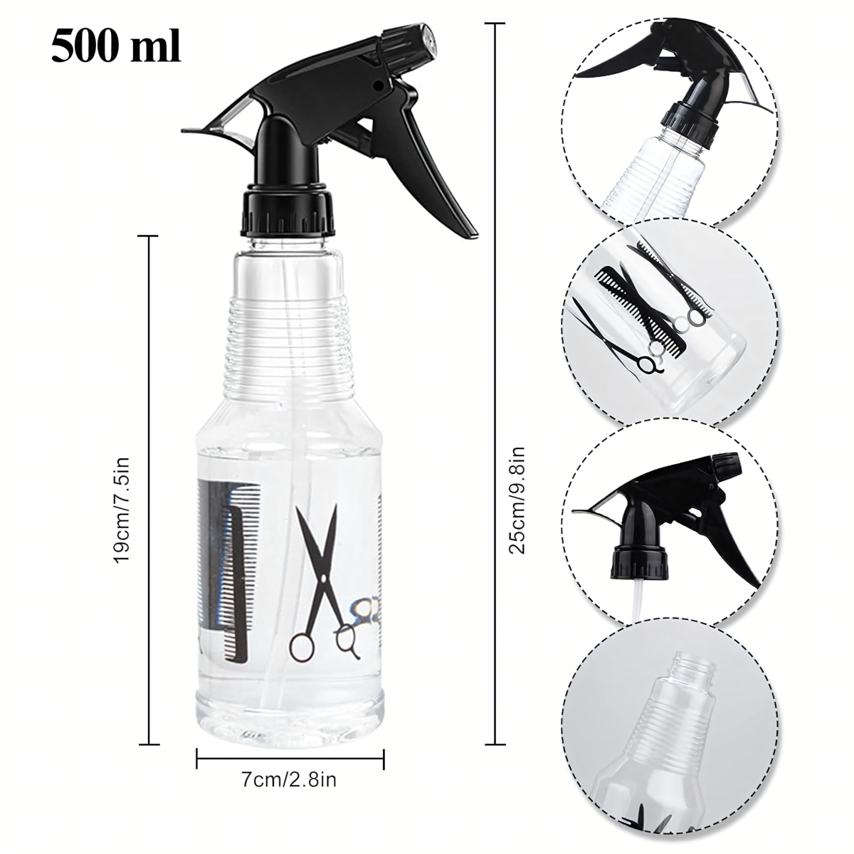 Universaalne pihusti 500 ml – praktiline tööriist juuksurisalongi, aia ja kodu jaoks. Sellel on reguleeritav vool (udu või tugevam vool), läbipaistev konteiner, mis lihtsustab vee taseme jälgimist ja mugav pihustusmehhanism. Ideaalne juuste, taimede ja ruumide värskendamiseks.