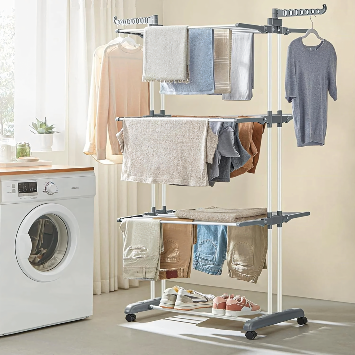 Kas otsid mugavat ja mahukat lahendust pesu kuivatamiseks? Meie 4-tasandiline XXL kuivatusrest mahutab kuni 40 kg riideid ning kokkupandava konstruktsiooni tõttu võtab see kokkupanduna vähe ruumi. Varustatud lukustatavate ratastega, on see äärmiselt praktiline ja lihtne liigutada. Ideaalne väikestesse korteritesse, suurtesse peredesse ja kõigile, kes hindavad mugavust ja funktsionaalsust!