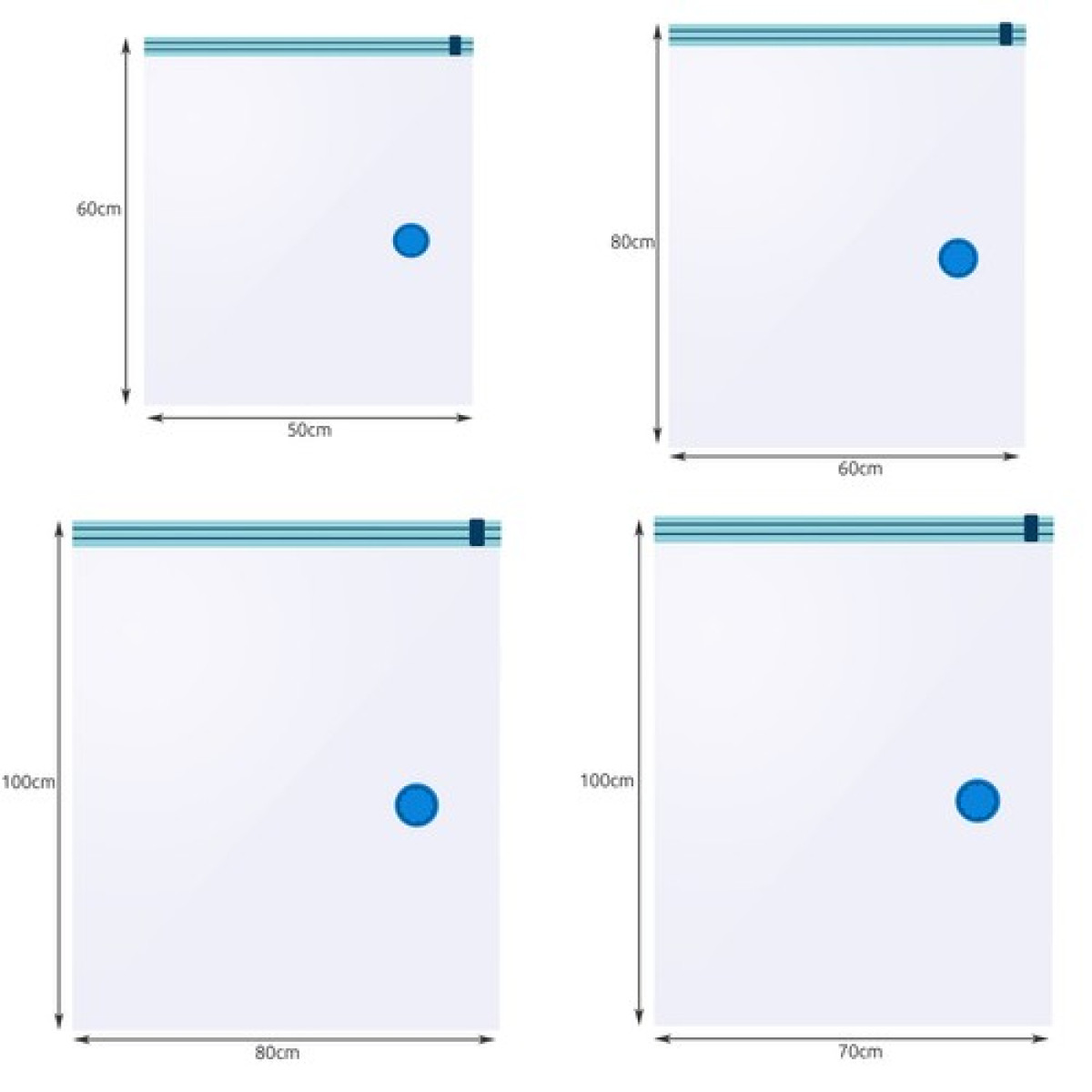 - SPETSIFIKATSIOON – värv: selge / sinine; mõõdud: (laius/pikkus) 40x6 0 - 4 tk.; (laius pikkus) 50x60 - 3 tk.; (laius pikkus) 60x800 - 2 tk.; (laius pikkus) 80x100 - 1 tk.; kaal: 0,76 kg; kaal pakendis: 0,884 kg.
