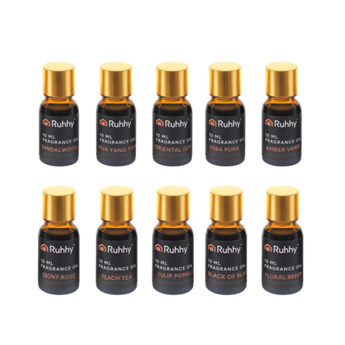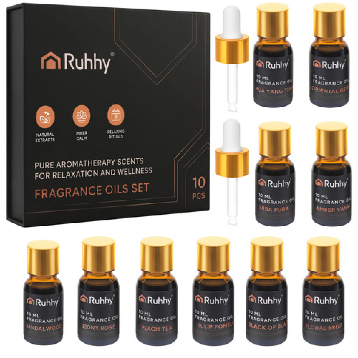 Aroomiõlid difuusorile ja ahjule - komplektis 10 x 10 ml RUHHY + 2 pipetti - 10 aroomi, mis muudavad teie interjööri