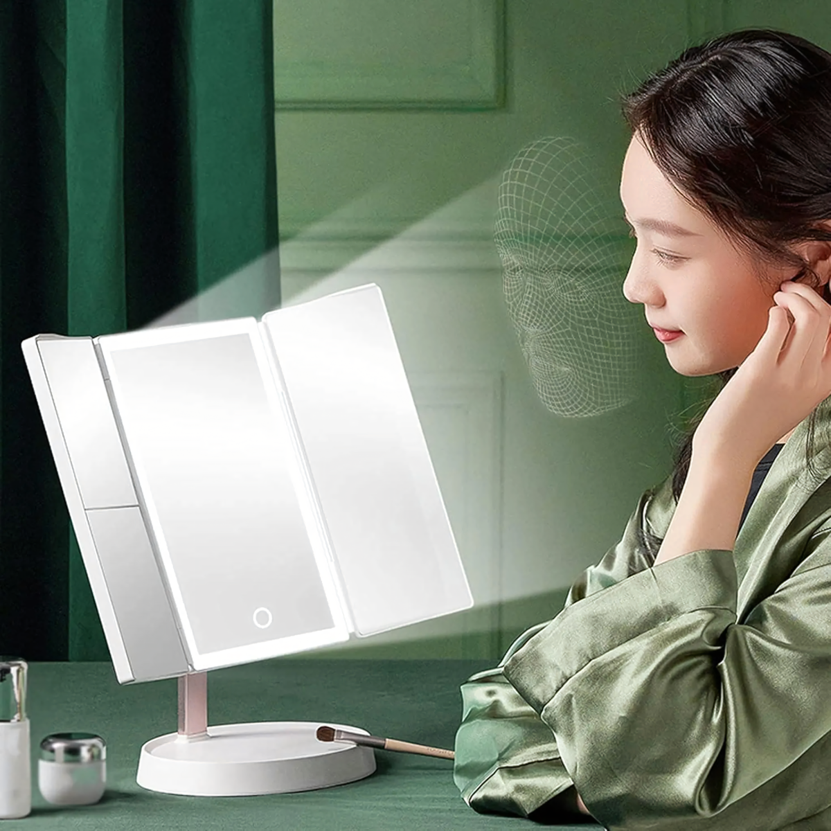 See elegantne LED valgustusega kolmekordne peegel koos reguleeritava nurgaga tagab, et iga meigi detail oleks täiuslik. Tänu reguleeritavale LED valgustusele saate ideaalsed tingimused sõltumata kellaajast. USB kaudu laetav aku muudab peegli mugavaks ja kaasaskantavaks – ideaalne ka reisil olles.