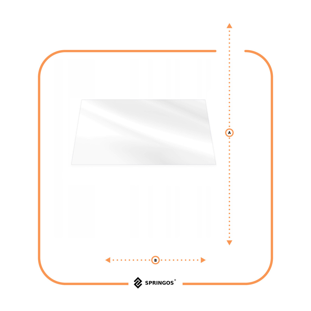 Spetsifikatsioonid: Kaubamärk: Springos® Värv: Läbipaistev Materjal: 100% PVC Veekindel Lihtne puhastada Kriimustuskindel Ümarad nurgad Mõõtmed: Kogupikkus: 140 cm Kogulaius: 100 cm Paksus: 0,5 mm