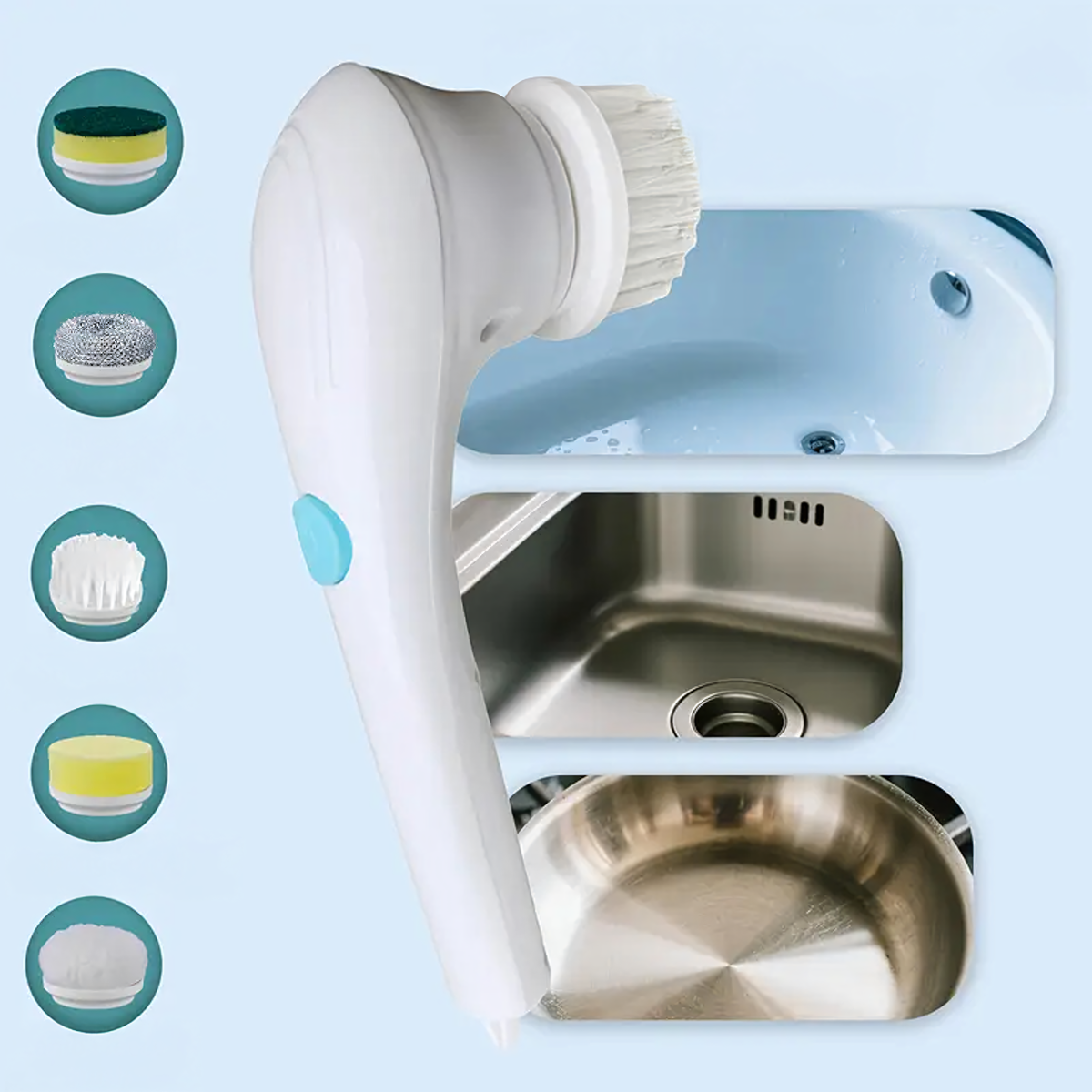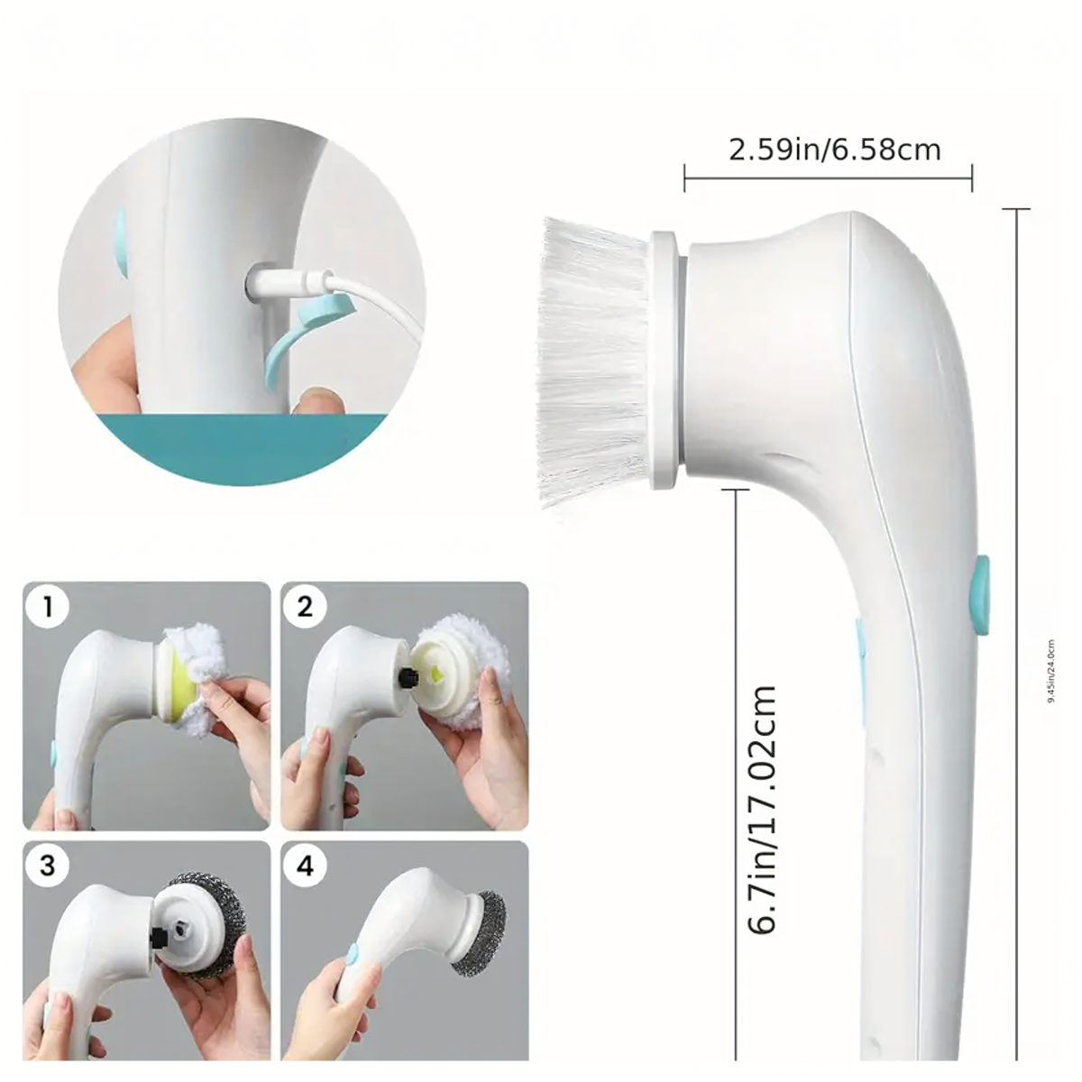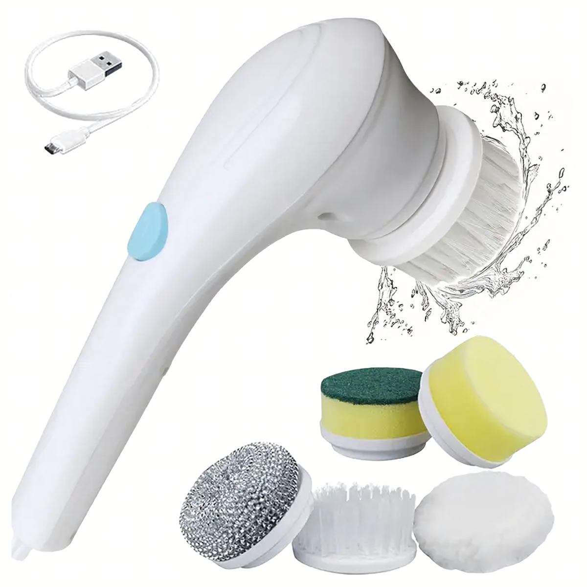 Elekteriline pöörlev harja 5in1 koos 5 vahetatava otsikuga on ideaalne köögi, vannitoa, auto ja raskesti ligipääsetavate kohtade puhastamiseks, USB kaudu laetav, tugev ja vastupidav.