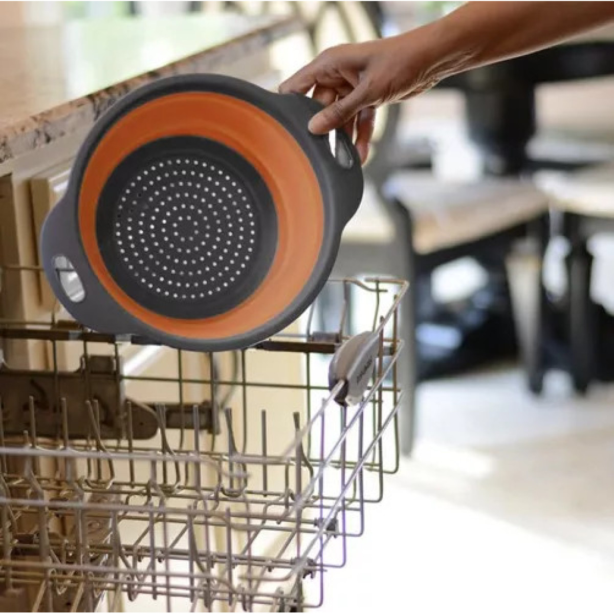 Mugav ja funktsionaalne kokkupandav silikoonsõel on suurepärane valik igasse kööki, mis hindab ruumisäästlikkust ja praktilisust. See kompaktne ja lihtsalt kasutatav kurn sobib suurepäraselt erinevate toodete pesemiseks ja nõrutamiseks puu- ja juurviljadest pasta või riisini. Valmistatud kvaliteetsest silikoonist, seda on ohutu kasutada, lihtne puhastada ja see ei võta palju ruumi, mistõttu sobib ideaalselt ka väiksematesse köögikappidesse.