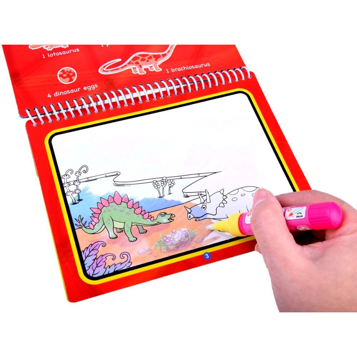 Kogu lõbu seisneb selles, et leida pildile peidetud esemed, kasutades ainult veepintslit. Värvige lehte veega ja vaadake, kuidas see värvub ja ilmub pilt. Suurepärane meelelahutus igale väikesele kunstnikule, kes armastab maalida loomi ja dinosauruseid.