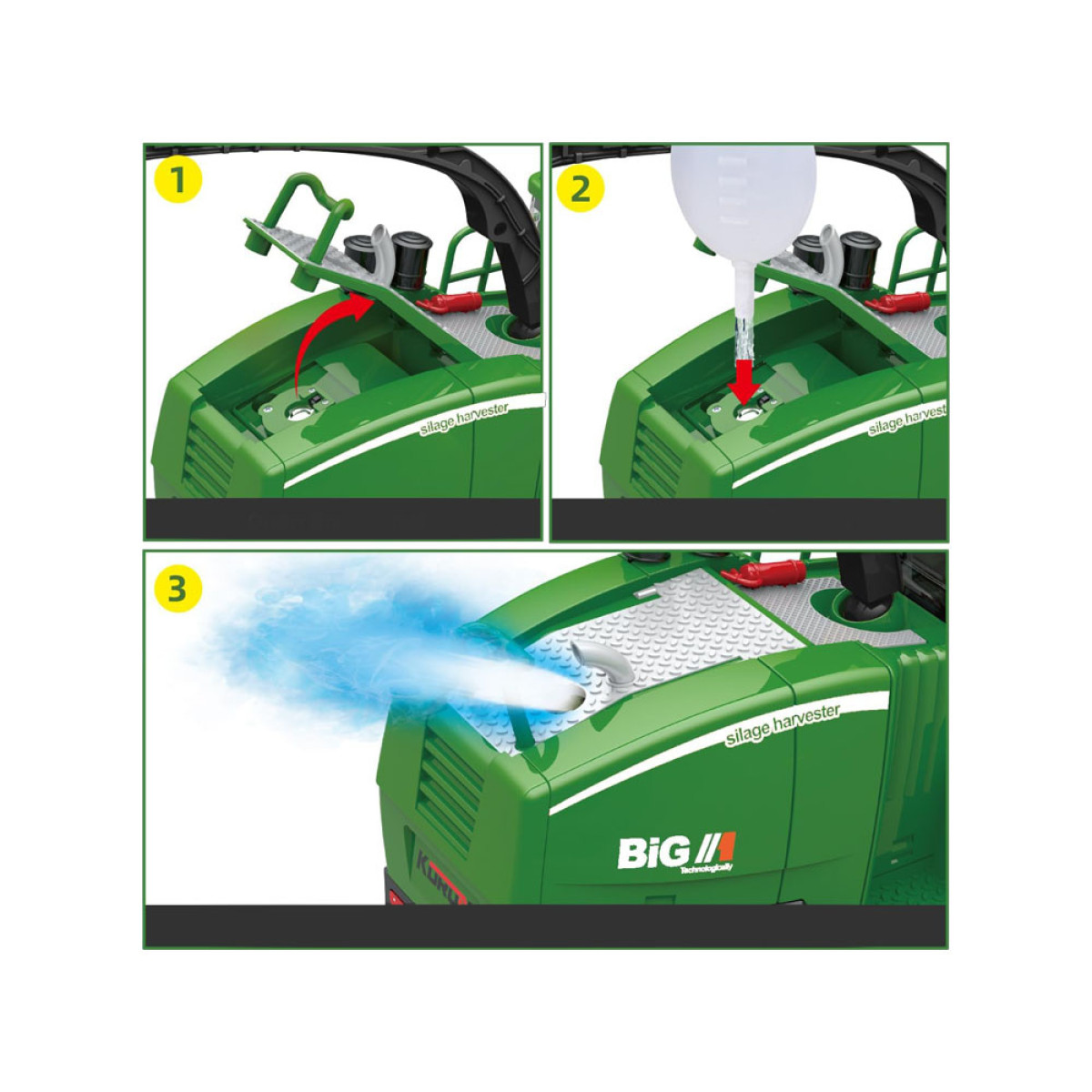 Suurim atraktsioon on suitsu funktsioon. Piisab, kui täita veega pudeli abil mahuti, mis asub hõbedase klapi all. Kui suitsetamisnupp puldil on vajutatud, tõuseb kombaini tagant üles suits, mis on valgustatud väikese dioodiga kere sees. Efekt on väga realistlik.