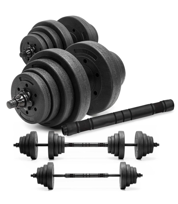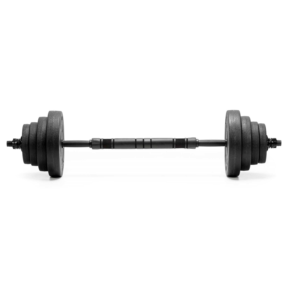 - Komplektis on spetsiaalne ühendus kahe hantli ühendamiseks üheks kangiks
