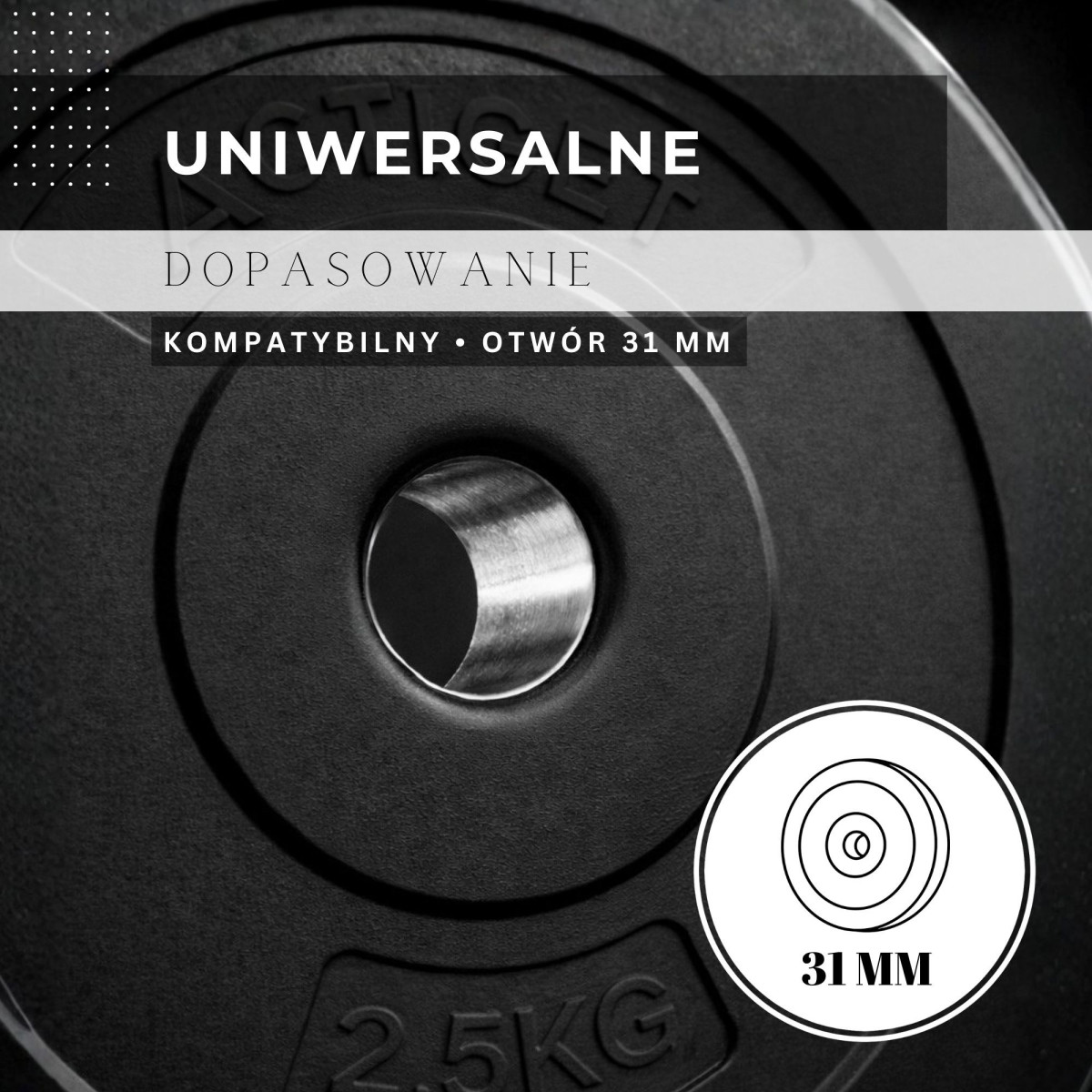 Kaubamärk: Actiget® Materjal: väline kate PP-st, täidis – tsement Värv: must Kaal: 1,25 kg Mõõtmed: Koguläbimõõt: 17,5 cm Paksus: 3 cm Siseläbimõõt: 3,1 cm Lisainfo: Tootel on Actiget® logo