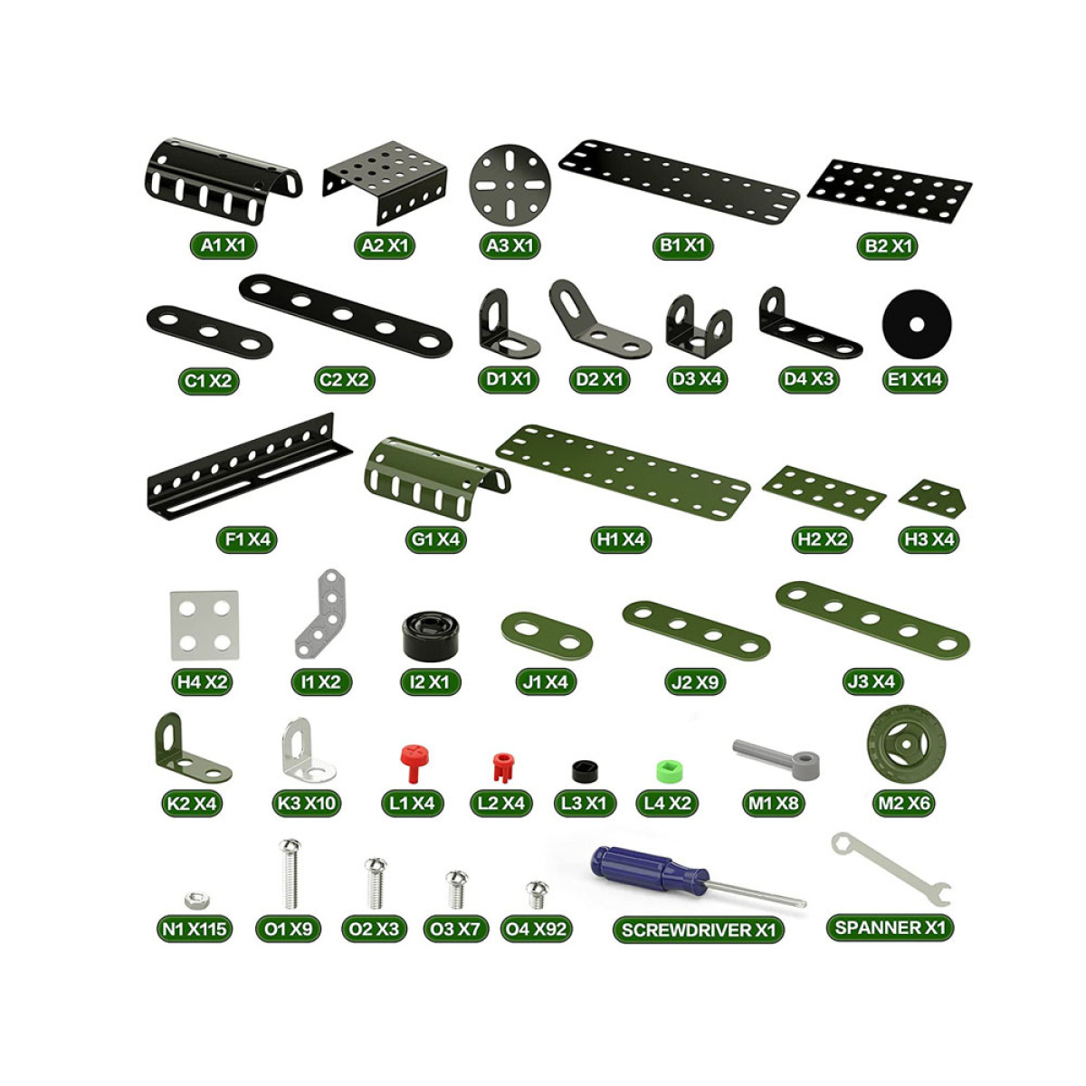 Komplekt sisaldab 340 elementi: