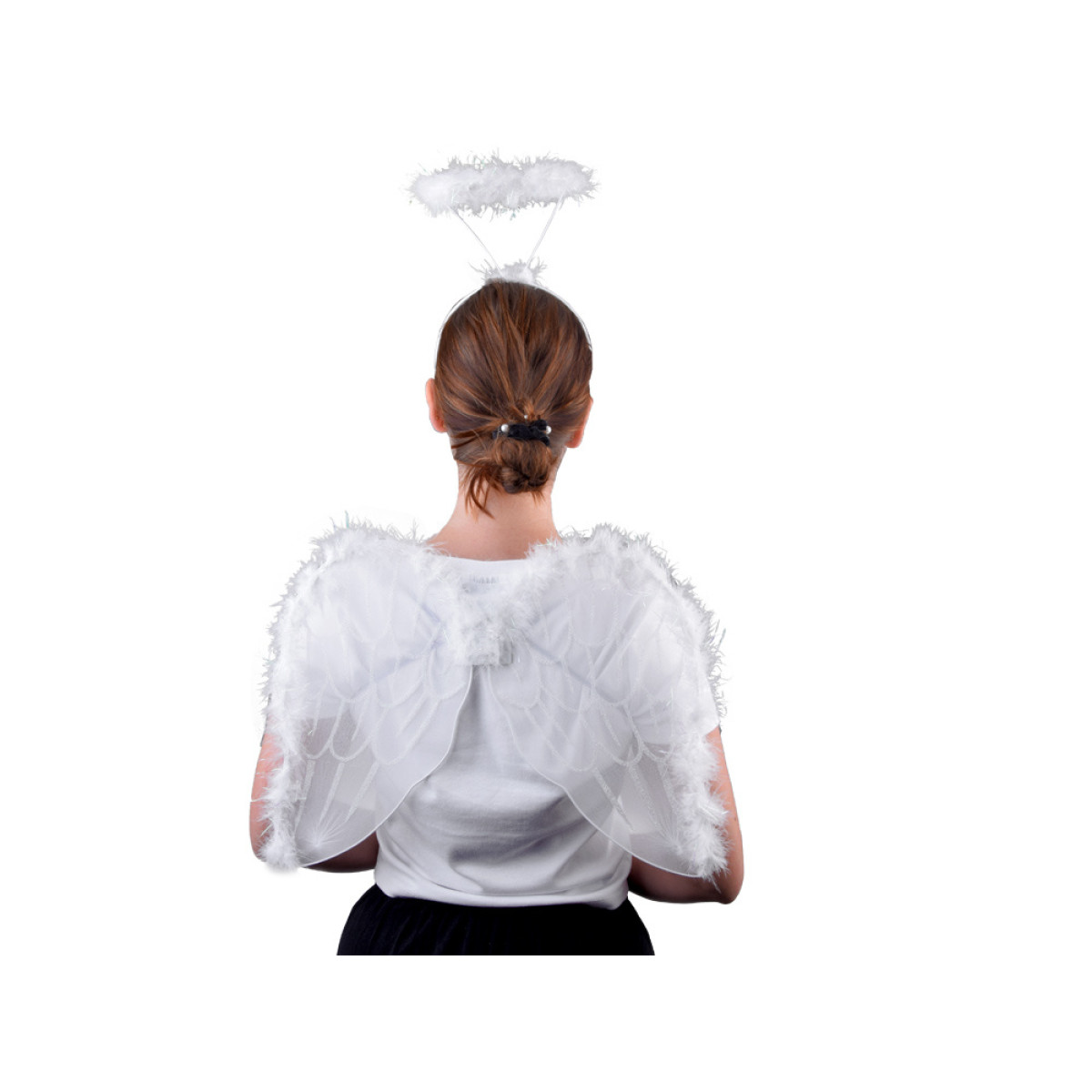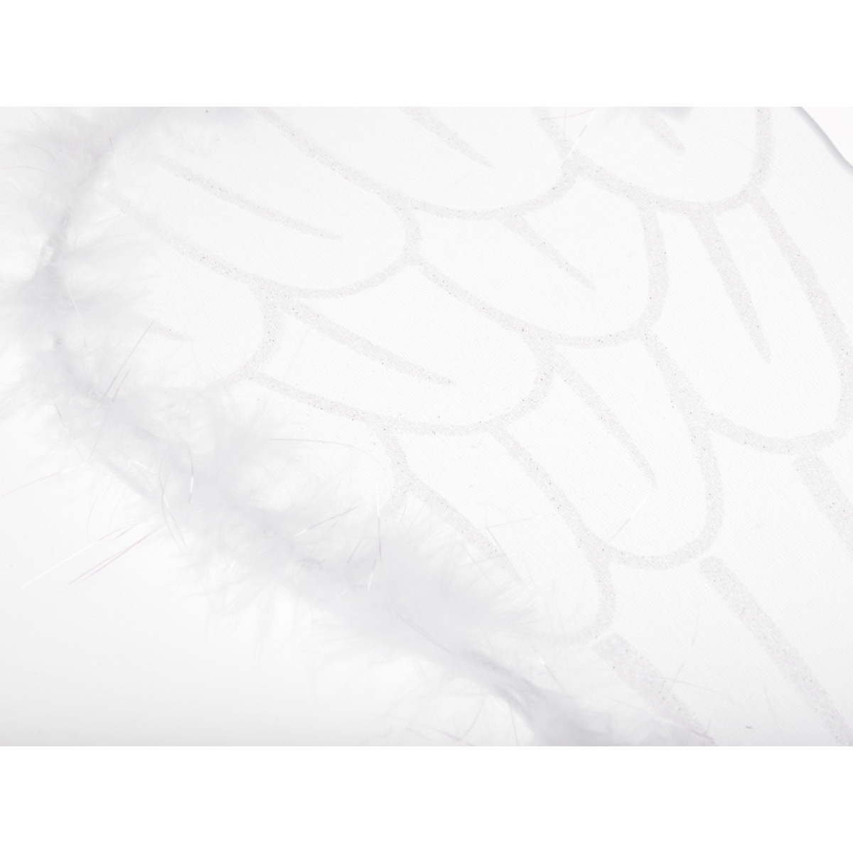 - Tiivad – valged, õrnalt läikivad glitterdetailidega. Kinnitatakse elastsete kummide abil, mugavad kanda. Mõõtmed: 42 cm laius ja 33 cm kõrgus.
