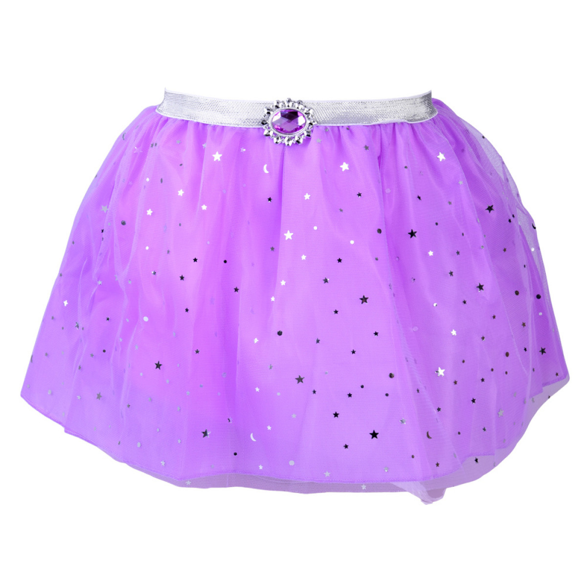 Komplekt sisaldab kerget, õhulist seelikut, millel on peen sära. Elastne vöökoht muudab selle kergesti kohandatavaks, tagades mugavuse tantsimisel ja mängimisel.