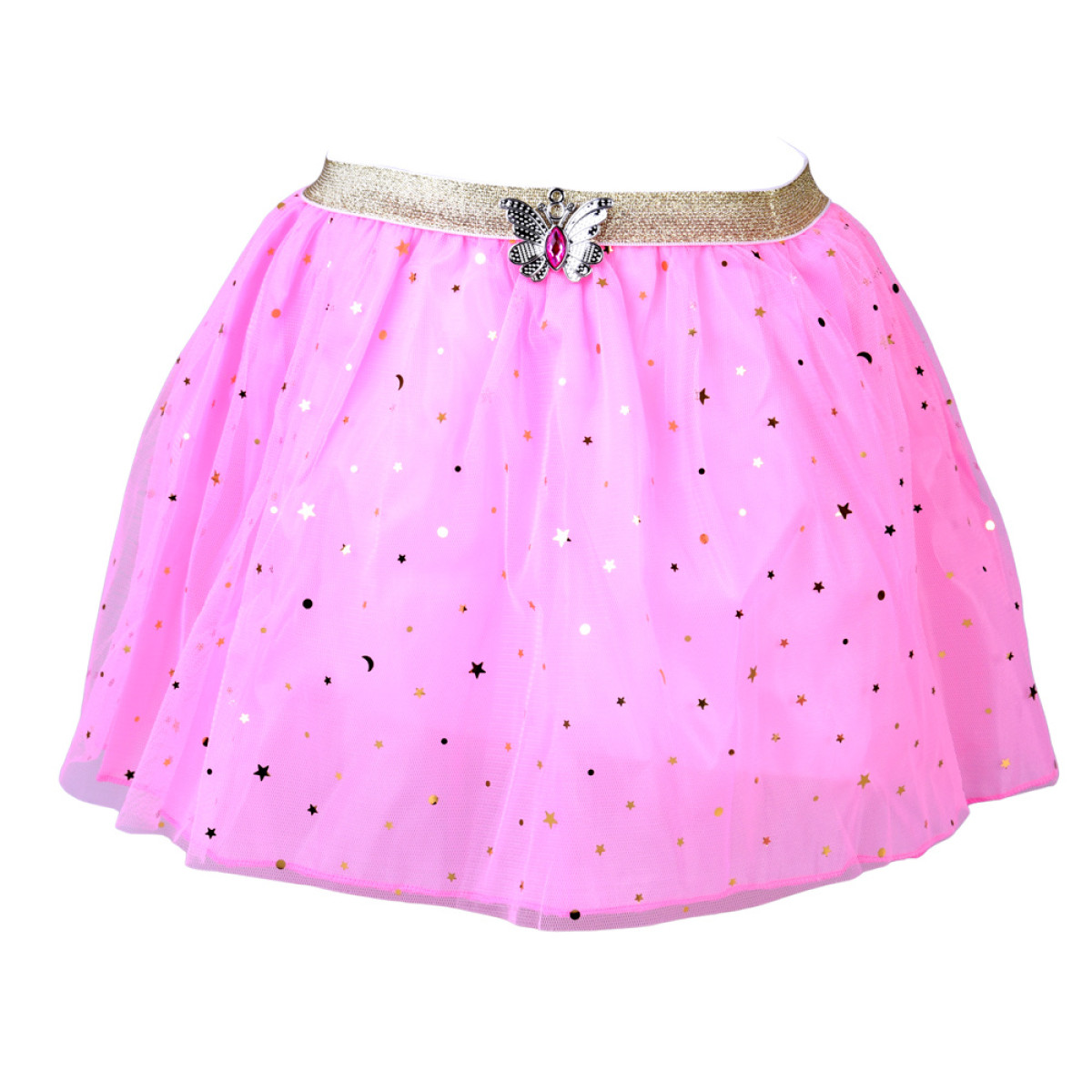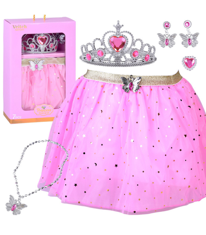 Komplektis on kerge roosa seelik õrna läikega, mis kaunilt lehvib iga liigutuse juures. Elastne kummipael vöökohal tagab mugavuse mängides ja tantsides, kohandudes kergesti kehakujuga.