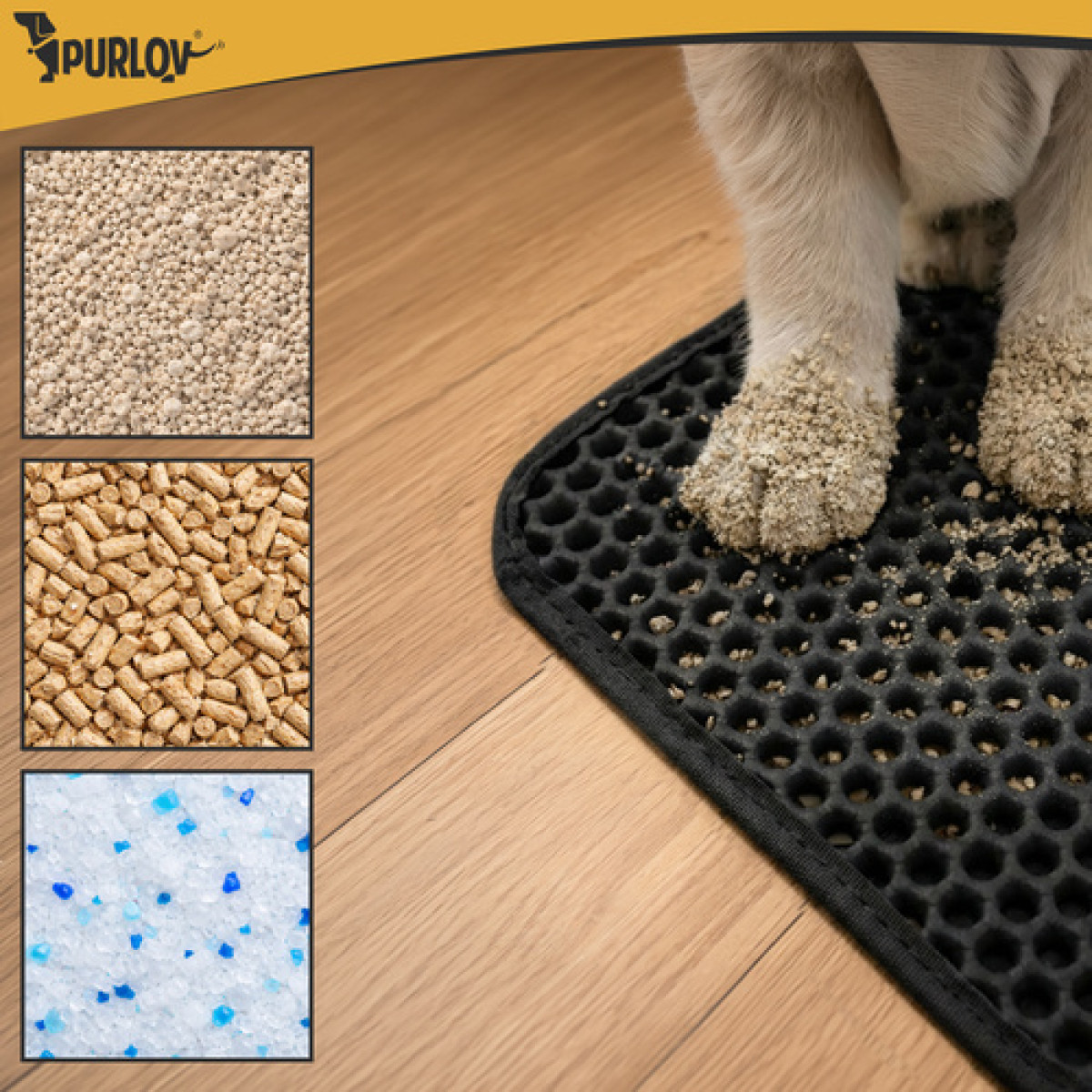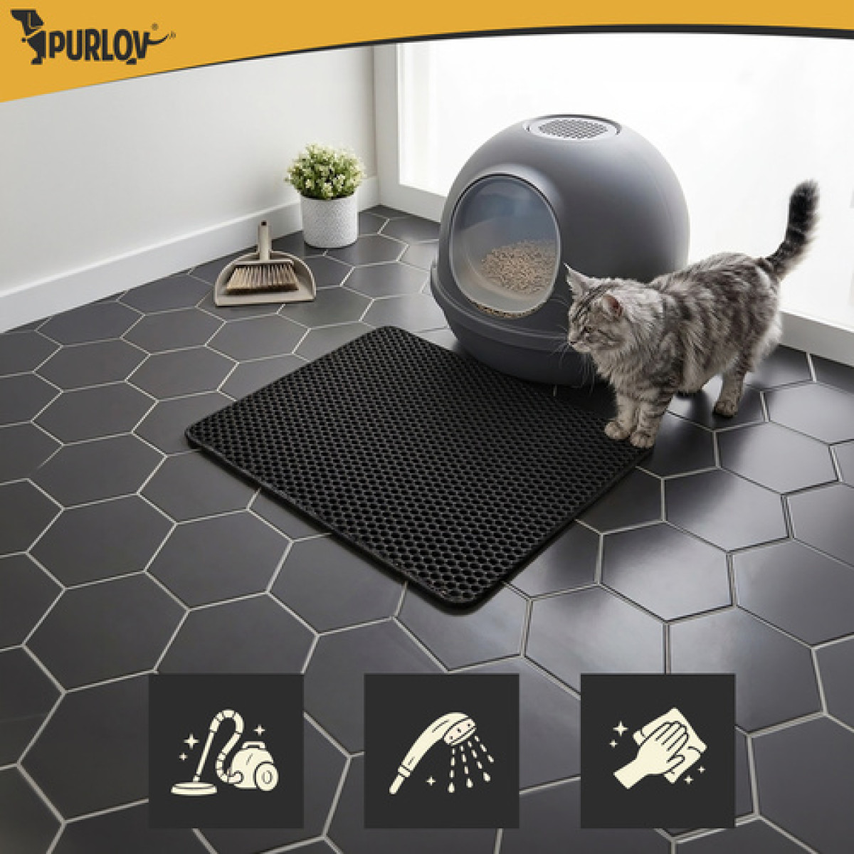 Purlovi kassiliivamatt 60 x 45 cm aitab hoida kassiliivakasti ümbruse puhtana. Kui kass väljub liivakastist, püüab matt käppade külge jäänud liivaterad kinni ja vähendab nende kandumist põrandale. See on praktiline lahendus, mis aitab vähendada igapäevast koristamist.