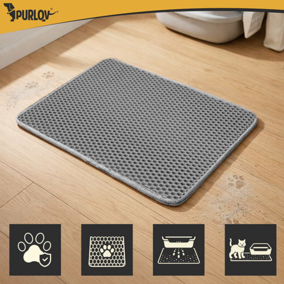 purlov kassiliivamatt 60 x 45 cm aitab hoida kassiliivakasti ümbruse puhta ja korras. kahekordne kärgstruktuur püüab kinni kassikäppade külge jäänud liivaterad ning vähendab nende kandumist põrandale. see on praktiline lahendus, kui soovid vähem igapäevast pühkimist ja rohkem puhtust kassiliivakasti ümber.