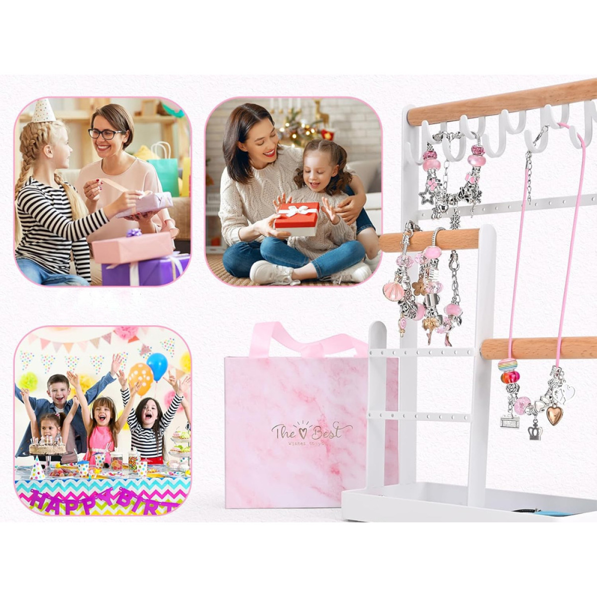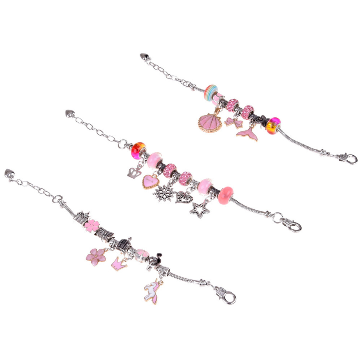 Käevõrude komplekt on ideaalne väikestele printsessidele, kes armastavad sära ja midagi oma kätega luua. Käevõrusid saab kaunistada värviliste kristallide, ripatsite ja amulettidega, mis pakuvad palju võimalusi unikaalsete ehete loomiseks.