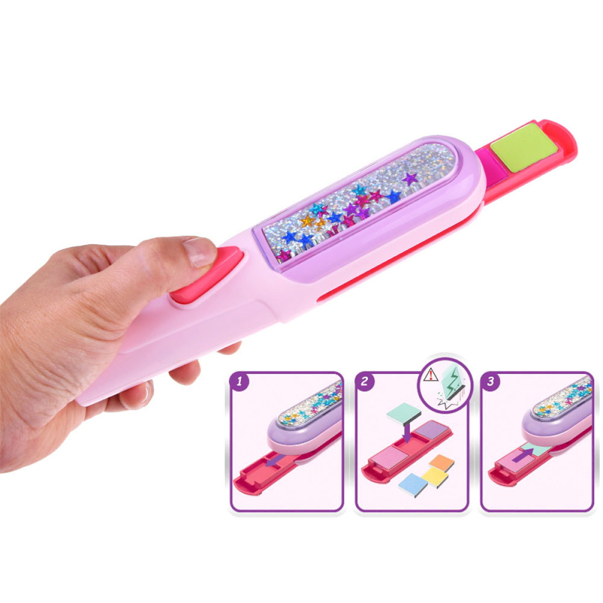 Parimate tulemuste saamiseks niisutage juuksed esmalt veega. Tõmmake seadme plaat välja ja asetage sellele valitud värvid, seejärel sisestage uuesti seadmesse. Liigutage seadet aeglaselt üle juuste ja valmis! Intensiivsema tulemuse saavutamiseks tõmmake sama värviga korduvalt üle sama juuksesalgu. Lõbus soeng on valmis!