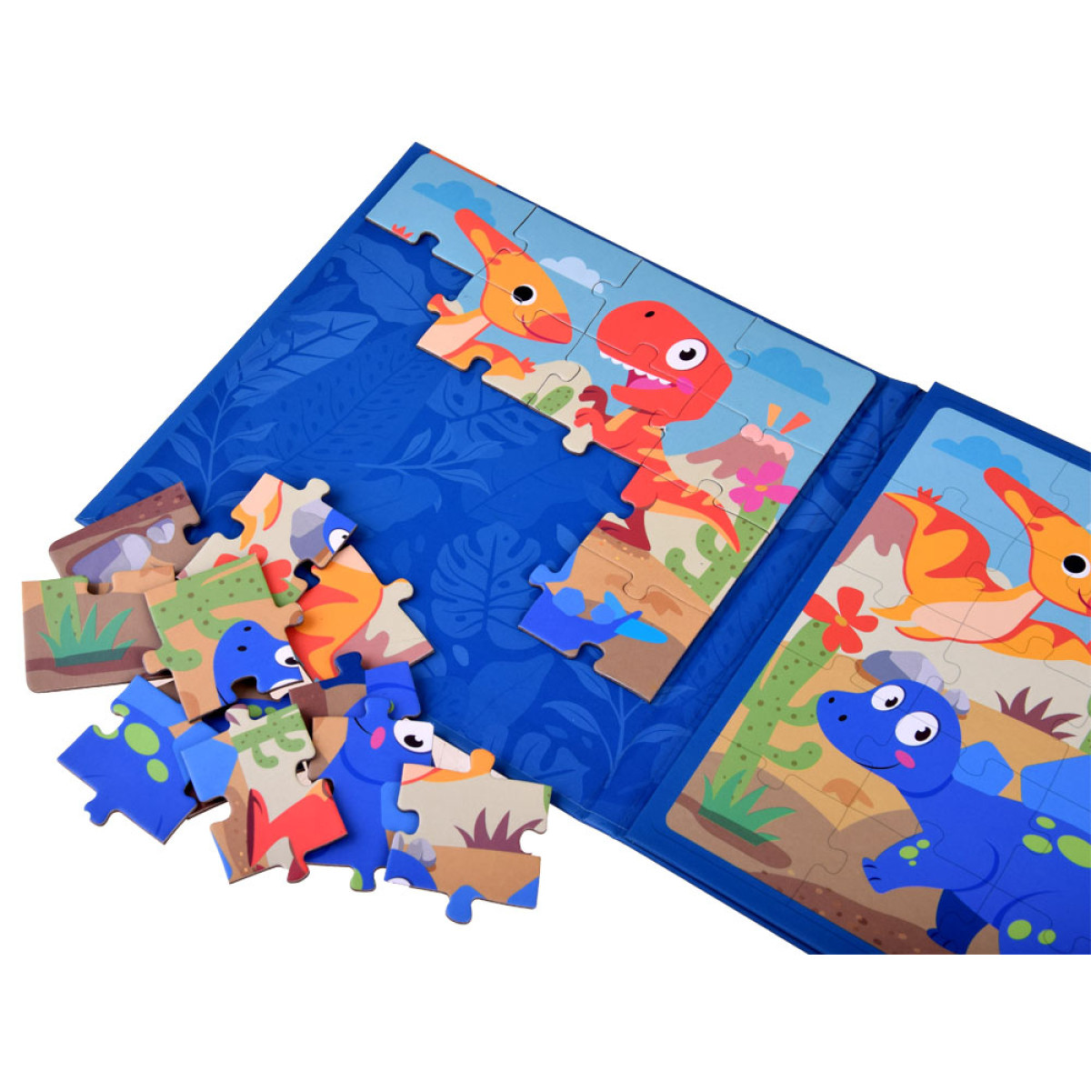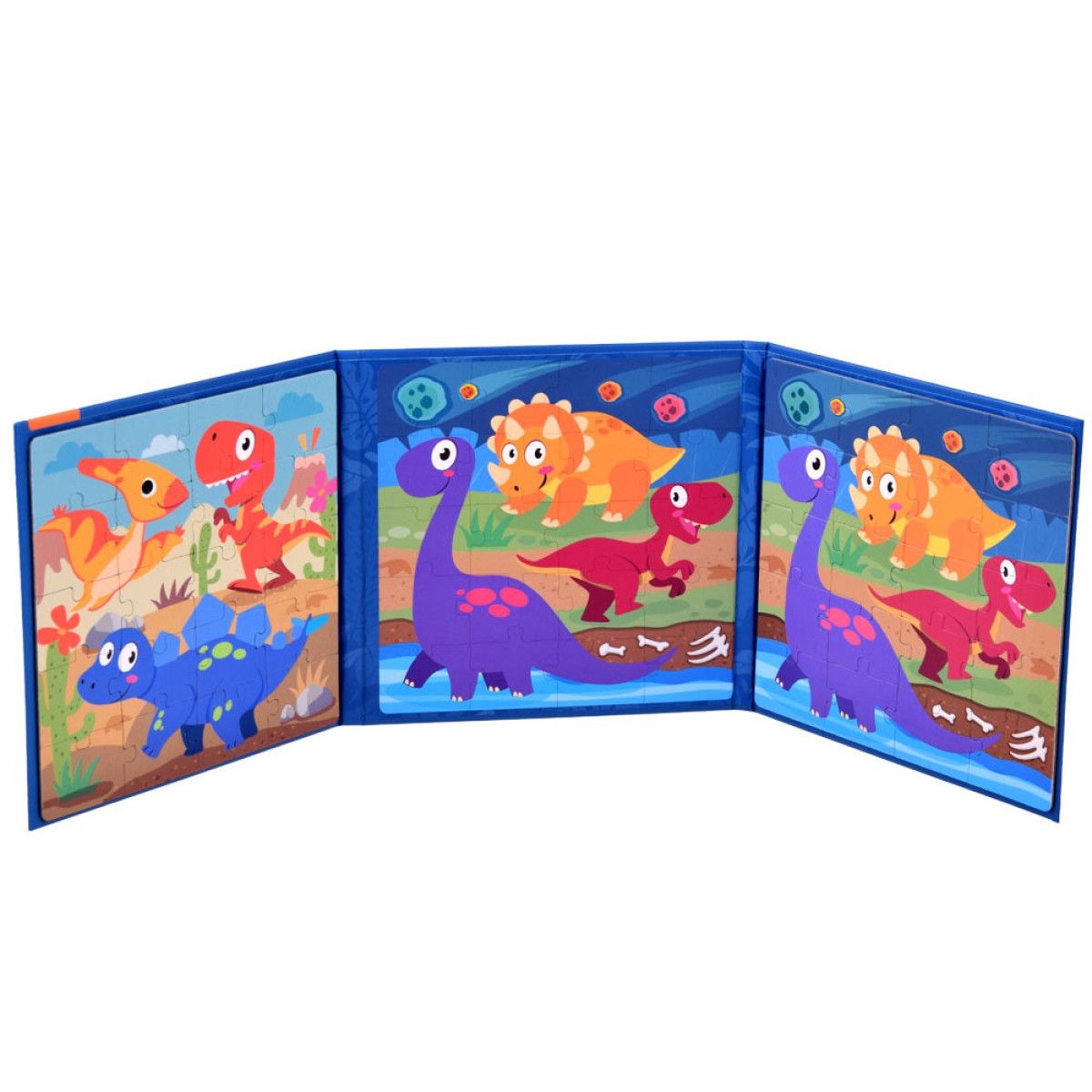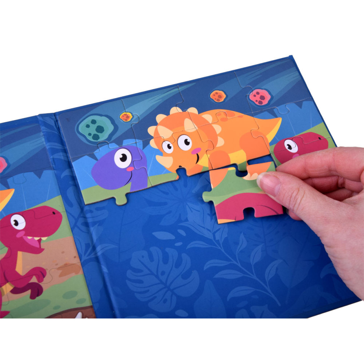 Dinosaurused on suletud tugevasse raamatusse, pakkudes igale lapsele palju loovat lõbu. Komplekt koosneb kahest magnettahvlist, mis kujutavad rõõmsaid dinosauruseid. Lapse ülesandeks on kokku panna ja sobitada osad omavahel, et moodustada rõõmsate dinosaurustega tahvlid.