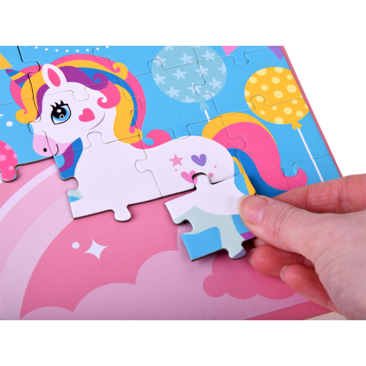Iga tahvel koosneb 20 tükist. Laps saab magnetpinnal puslet kokku pannes kasutada näidispilti ükssarvikust. Magnetiline komplekt muudab pusle kokkupaneku lihtsamaks, tükid ei kuku maha ja ei lähe segamini ootamatute liigutuste tõttu, mis on väikelastele loomulikud. Pusle arendab lapse tähelepanuvõimet ja käelist osavust. Magnetilised pusled sobivad suurepäraselt ka reisil mängimiseks, kuna tükid püsivad kindlalt paigal.
