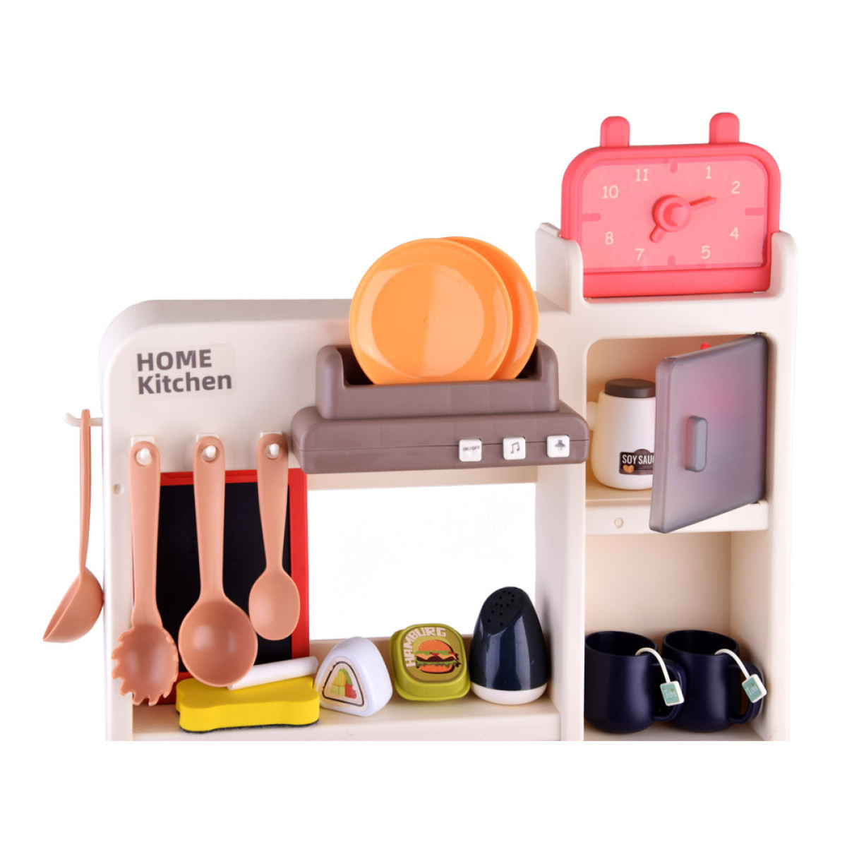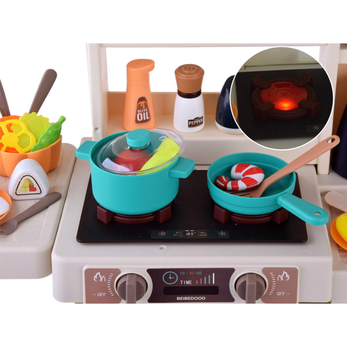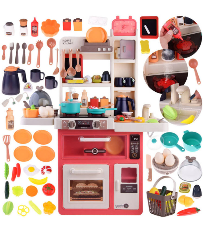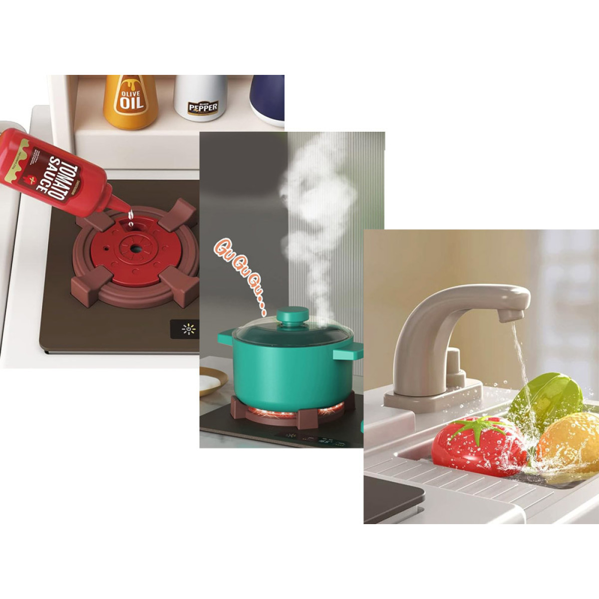 - Gaasi pliit helide, auru ja valgusefektidega. Köök on varustatud LED-lampidega, mis simuleerivad reaalset toiduvalmistamise valgusefekti. Põleti keeramisel kostuvad keetmise helid koos punase valguse vilkumisega. Lisandub auru efekt (lihtsalt valage veidi vett põletisse). Põletid toodavad kahjutut auru, mis lisab mängule autentsust.