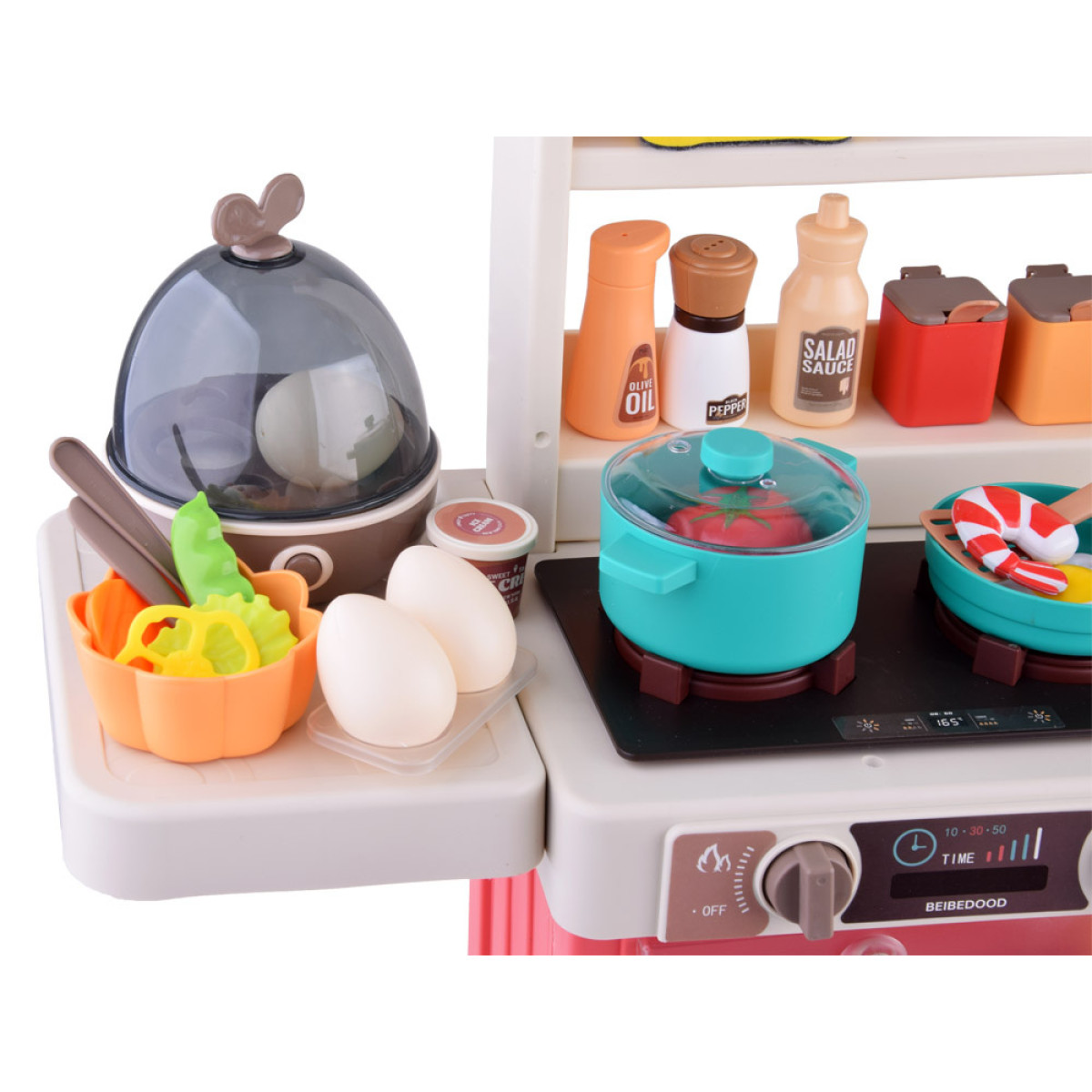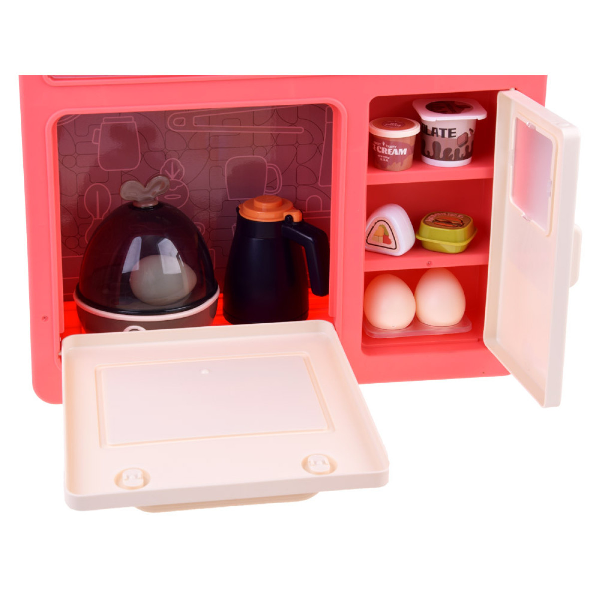 63-osaline köögikomplekt on ideaalne varustatud köök väikesele kokale. Köök on valmistatud plastikust, kauni kreemja ja roosa värviga.