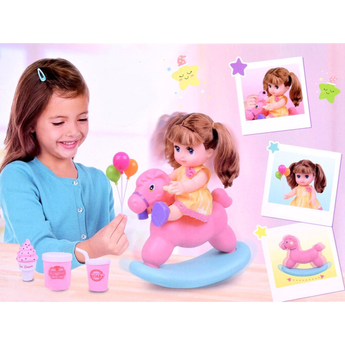 Kiikhobune on täielikult plastikust, silmale meeldivates värvides. Tänu laiale istmele ja käetugedele saab nukk stabiilselt istuda.