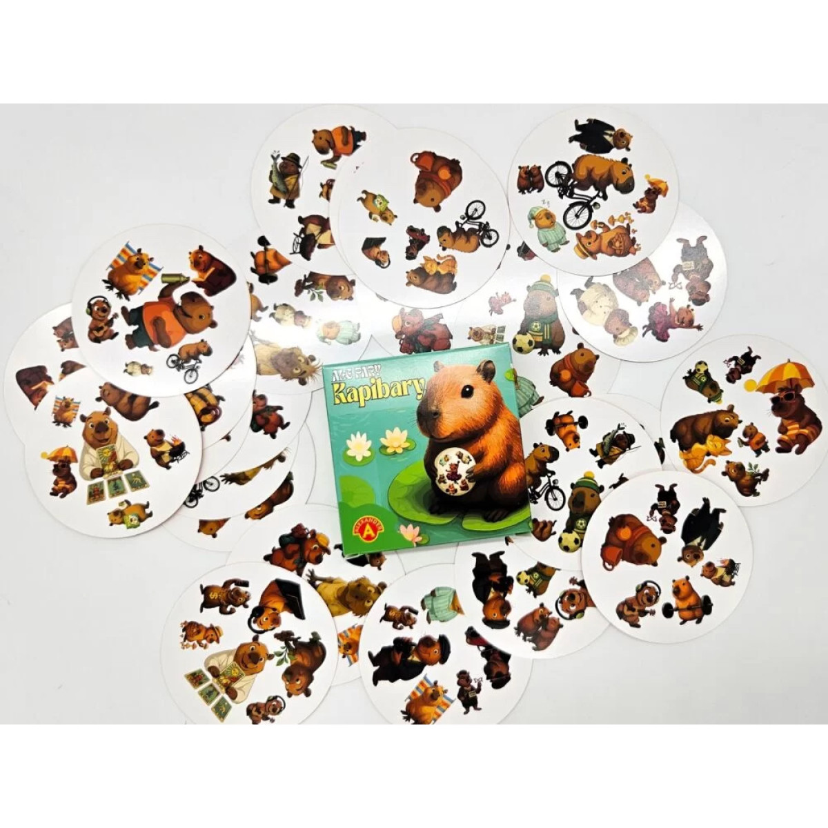 31 värvilist ja ümmargust kaarti kujutavad erinevates rollides ja olukordades armsaid kapibarasid. Võib kohata baleriini, muusikut, ärinaist, aednikku, sportlast ja isegi juhti! Illustratsioonid on täis detaile ja huumorit, mis muudavad mängu veelgi kaasahaaravamaks.