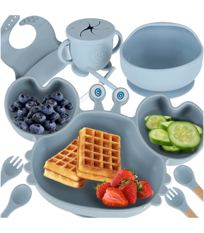 Silikoonist nõud lastele krabi komplekt 9 osa sinine