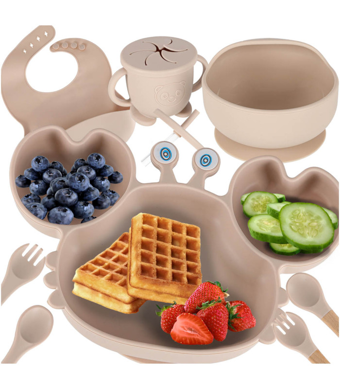 Silikoonist nõude komplekt lastele Krabi - 9-osaline