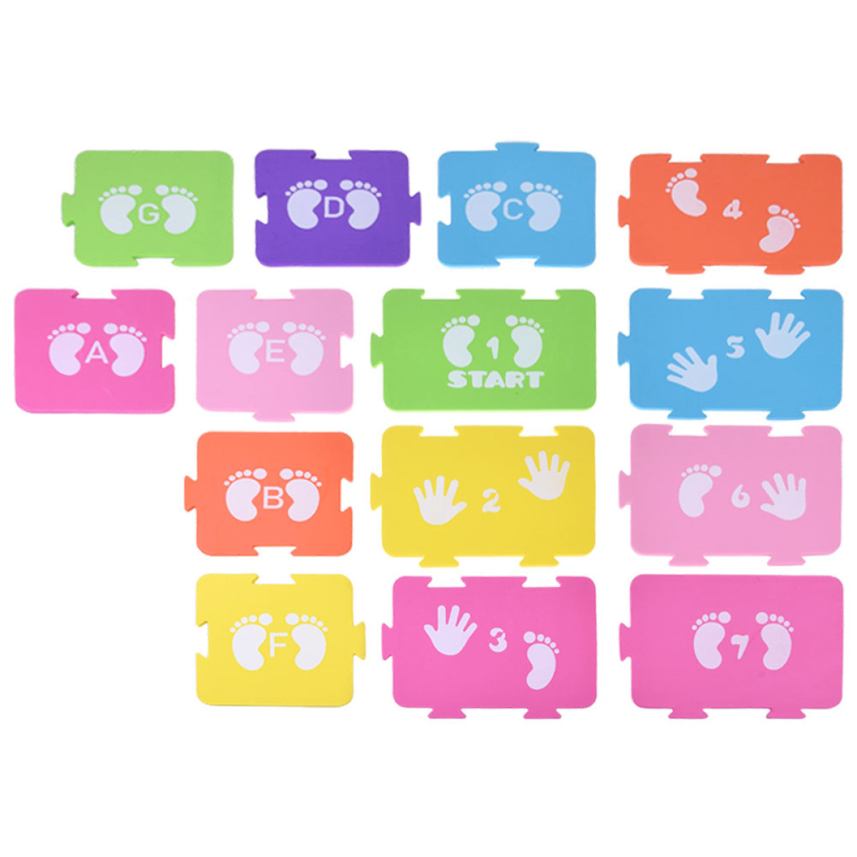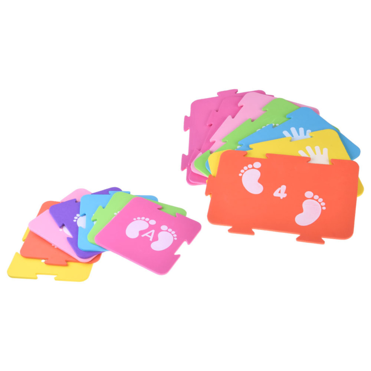 Lisaks: iga pusletükk on valmistatud pehmest vahukummist, mis on meeldiv puudutada ning on erinevat pastelset värvi. Iga elemendi peal on (liikumise sooritamise kõrval) joonistatud tähed ja numbrid, mille abil saab neid õigesti paigutada.