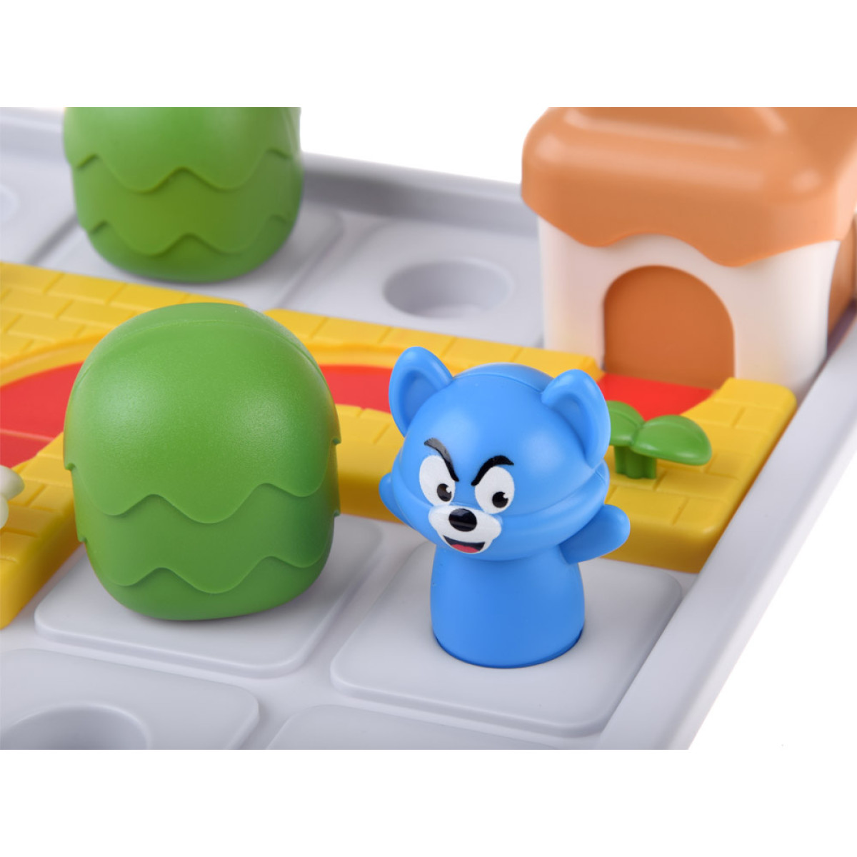 - Vali väljakutse raamatust. Aseta maja, puud ja hiir mängulauale vastavalt joonisele. Pööra tähelepanu maja korstna asendile – see näitab ukse õiget asendit.