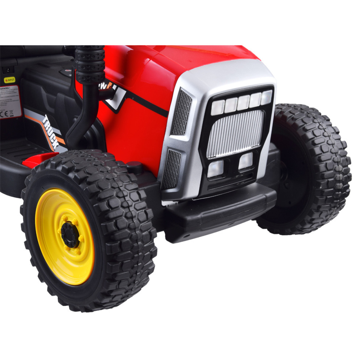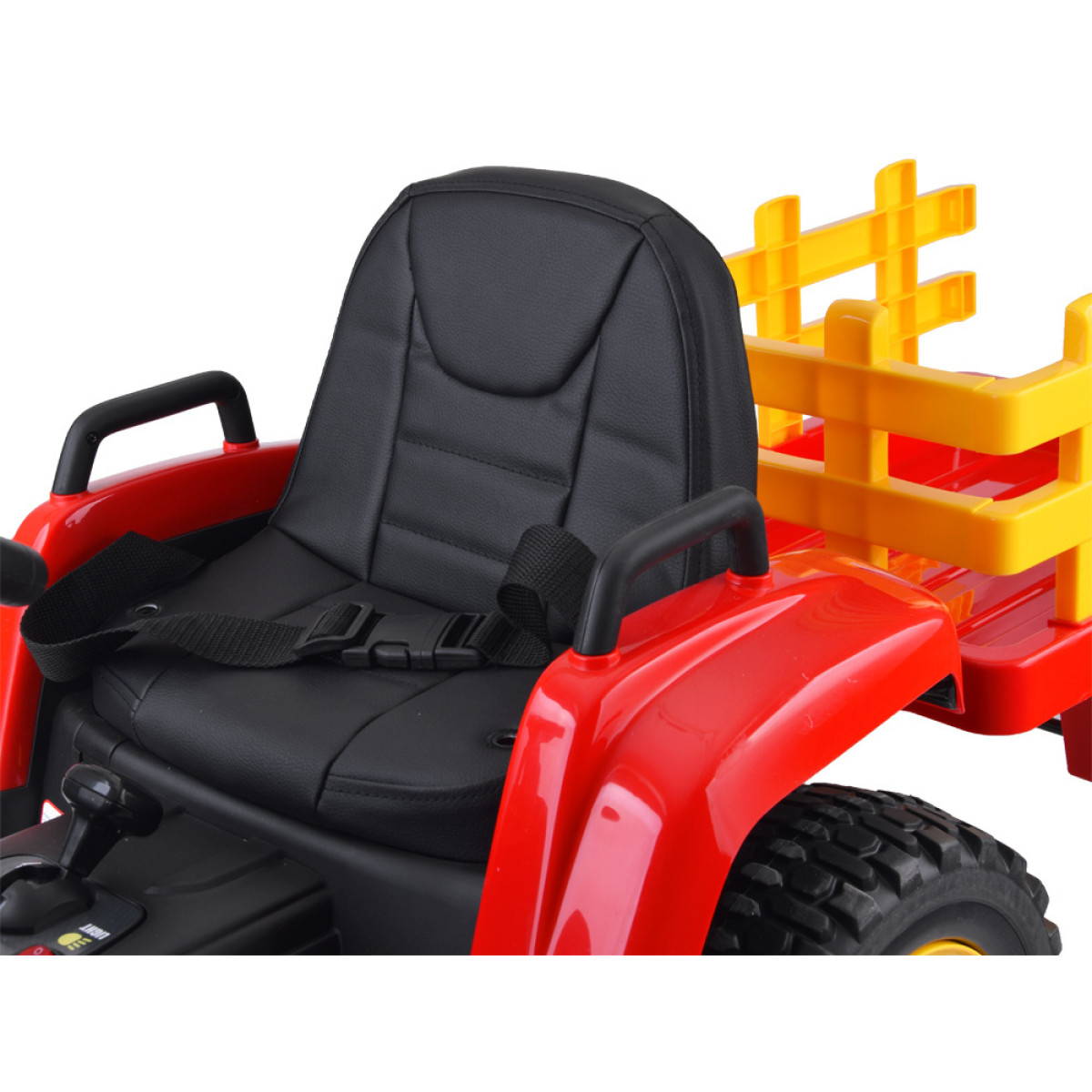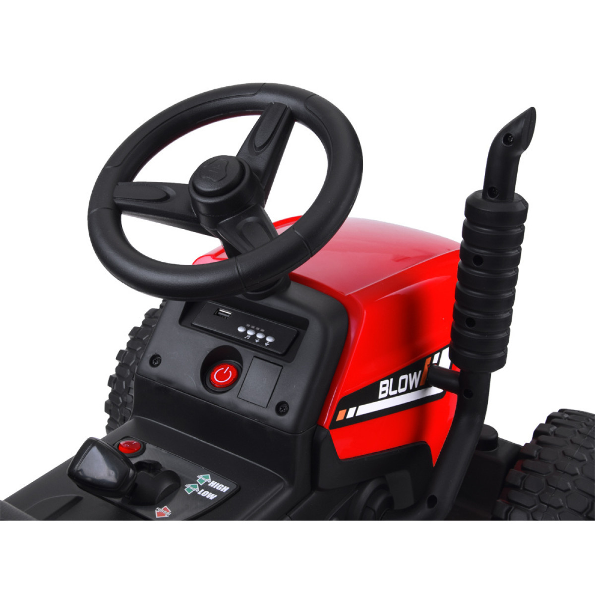 Traktori rattad on valmistatud EVA materjalist, mis summutab vibratsiooni ja vähendab müra kõval ebatasasel pinnal sõites. Tänu kahele mootorile suudab sõiduk kergesti toime tulla küngaste, ebatasasuste ja muruga. Traktoril on pidur, mis aktiveerub, kui jalg eemaldatakse gaasipedaalilt. Sõiduki kiirust saab juhtida 2,4Ghz juhtpuldiga, mis võimaldab vanematel täielikku kontrolli. Sõit edasi-tagasi on juhitav esi-, peatus- ja tagasikäigu lülitiga.