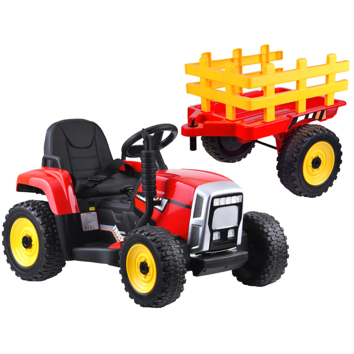 Imeline akuutoitega traktor koos järelkäruga on iga väikese juhi unistus, pakkudes palju lõbusat mänguaega. Traktor on varustatud helide ja valgusefektidega, muusikapaneeliga, mis sobib igasse kodumajapidamisse. Traktoril on mugav ökonahaga kaetud iste, käigukang sõidusuuna muutmiseks ja valguslüliti. Aeglane start tagab masina sujuva liikumise. Kaks tugevat mootorit ja aku tagavad jõudmise igasse sihtkohta.
