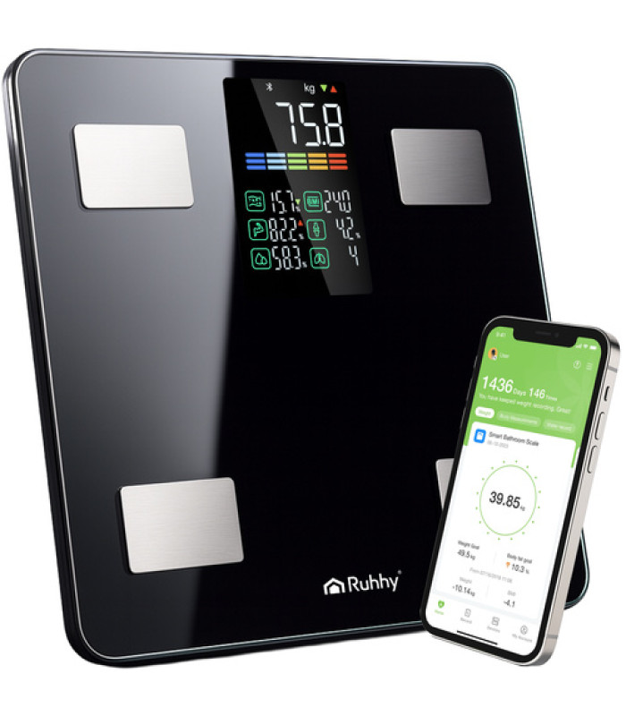 RUHHY BMI analitinės vonios svarstyklės iki 226 kg elektroninės su kūno analize – išsami sveikatos kontrolė jūsų išmaniajame telefone!