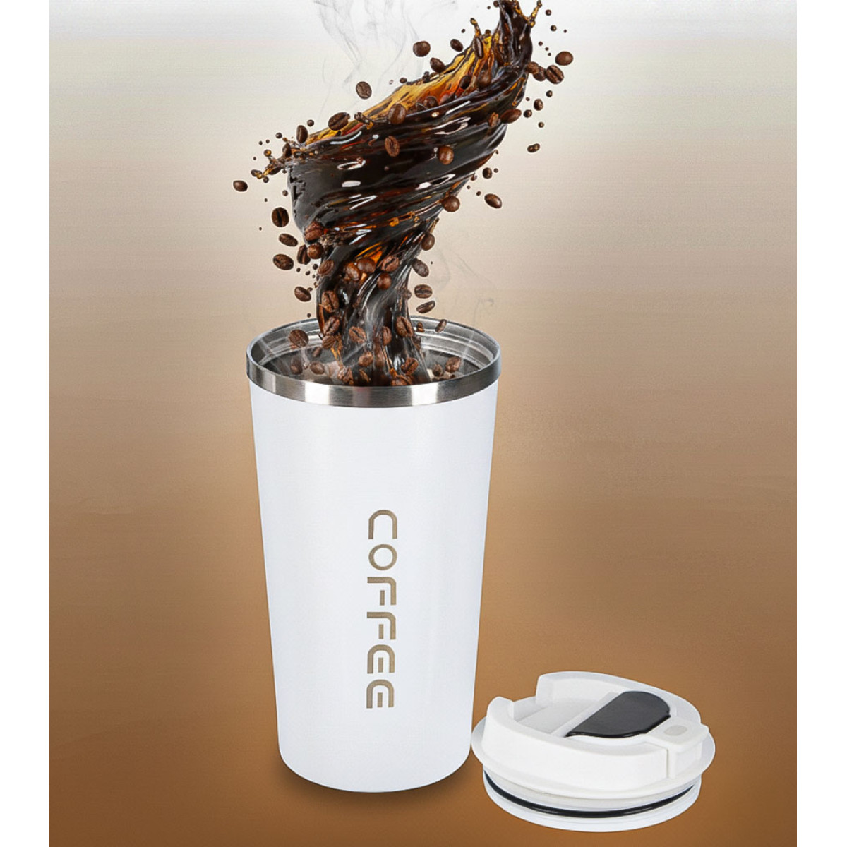 See autokruus määratleb mugavuse mõiste ümber. Avatav ja suletav huulik tagab hügieeni ja täieliku kasutusmugavuse. LED indikaator reageerib temperatuurile - punane tilk näitab, et jook on liiga kuum, ja roheline - et saate muretult juua. See on nutikruus kaanega, mis ühendab elegantse disaini ja kaasaegse tehnoloogia. Valge korduvkasutatav kruus on minimalismi, ergonoomika ja praktilisuse kombinatsioon - ideaalne täiendus igapäevastele tegevustele.