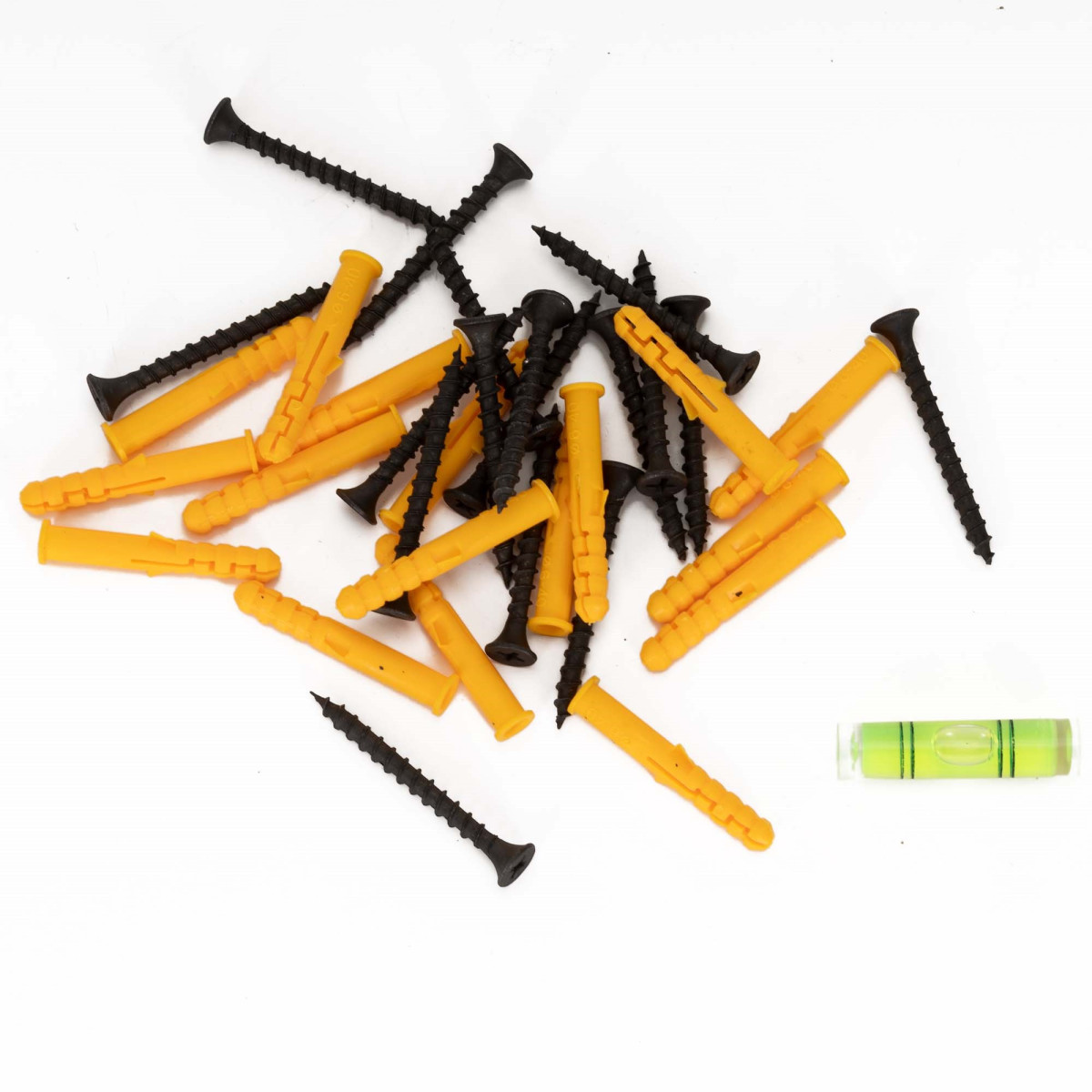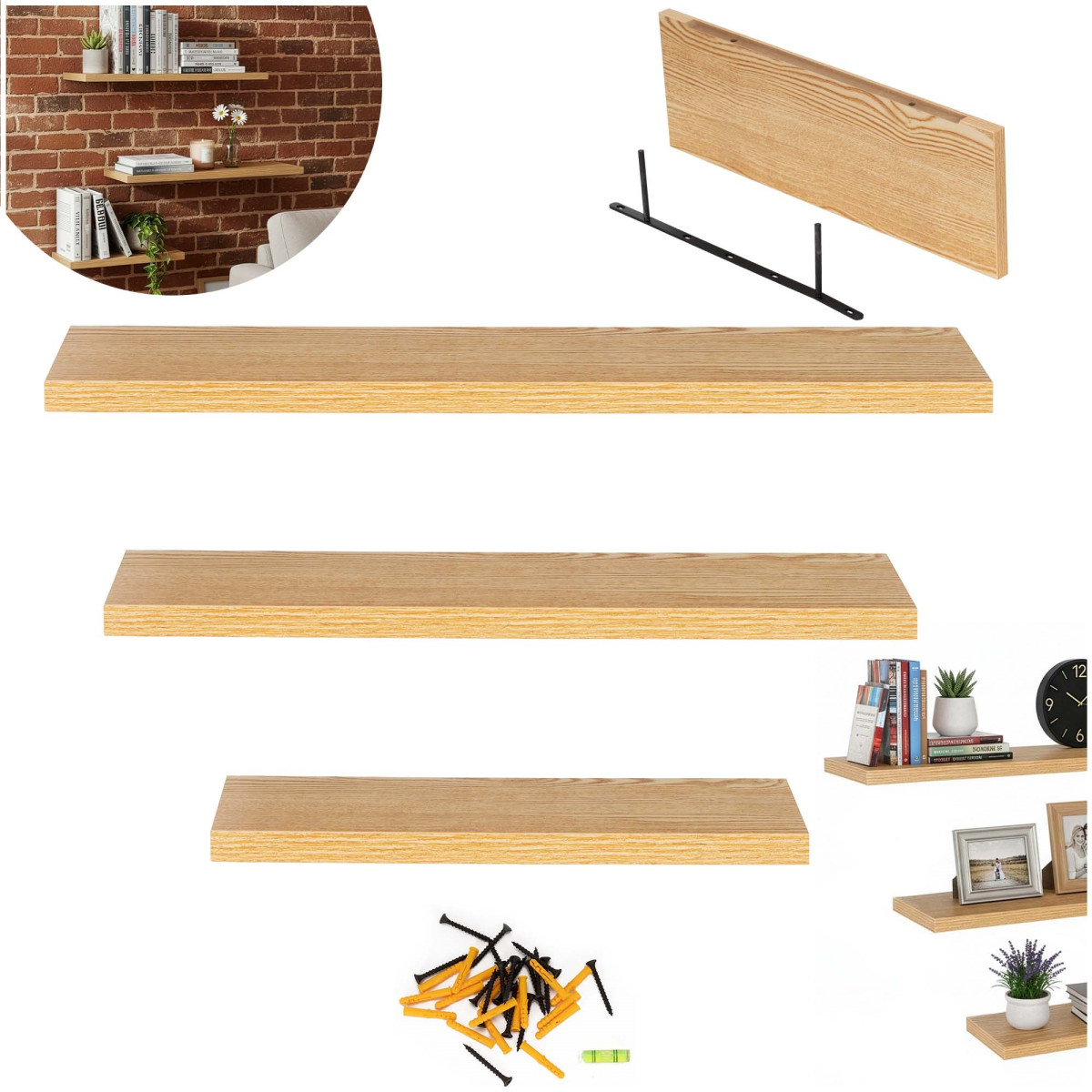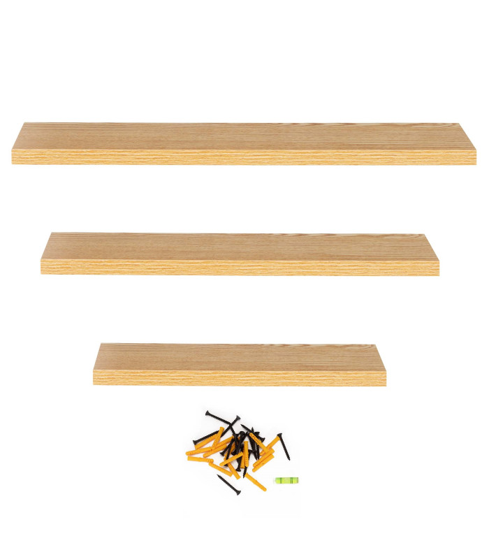 Kaubamärk: Springos® Materjal: metall, MDF Riiuli värv: pruun Maksimaalne riiuli koormus: 3 kg Mõõdud Väike riiul Laius: 30 cm Sügavus: 15 cm Paksus: 1.5 cm Paigaldusavade vahe: 5.5 / 7.5 cm Keskmine riiul Laius: 45 cm Sügavus: 15 cm Paksus: 1.5 cm Paigaldusavade vahe: 5.5 / 7.5 cm Suur riiul Laius: 60 cm Sügavus: 15 cm Paksus: 1.5 cm Paigaldusavade vahe: 5.5 / 7.5 cm Konstruktsioonielemendid Lameda riba pikkus: 25 cm Lameda riba kõrgus: 1 cm Lameda riba paksus: 0.3 cm Varraste pikkus: 7.2 cm Varraste läbimõõt: 0.6 cm Naelad Pikkus: 4.5 cm Naela läbimõõt: 0.4 cm Naelapea läbimõõt: 0.9 cm Tüüblid Pikkus: 4 cm Läbimõõt: 0.6 cm Vesilood Pikkus: 4 cm Läbimõõt: 0.9 cm Lisainfo Kinnitusdetailid kaasas Mõõtude tolerants on 2% Komplektis: 1 x väike riiul 1 x keskmine riiul 1 x suur riiul 3 x konstruktsioonielementi 15 x naela 15 x tüüblit 1 x väike vesilood