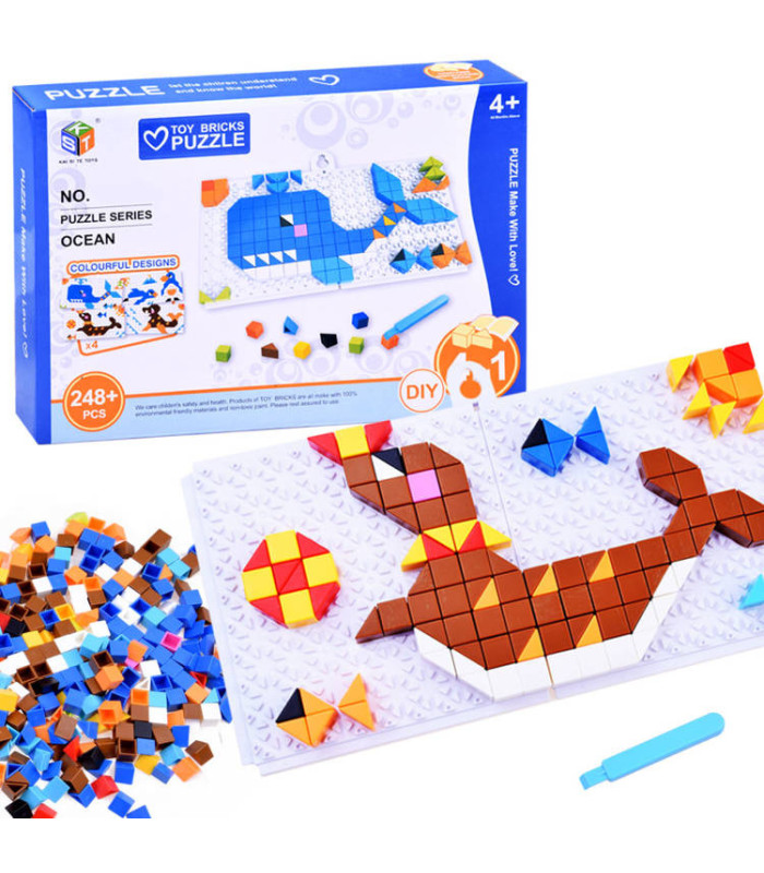 See on eriline mänguasi, mis ühendab endas õppimise ja mängu, pakkudes lõputuid tunde loovat lõbu. Komplekt koosneb plastklotsidest, mida saab asetada spetsiaalsele alusele, luues värvilisi mosaiike.