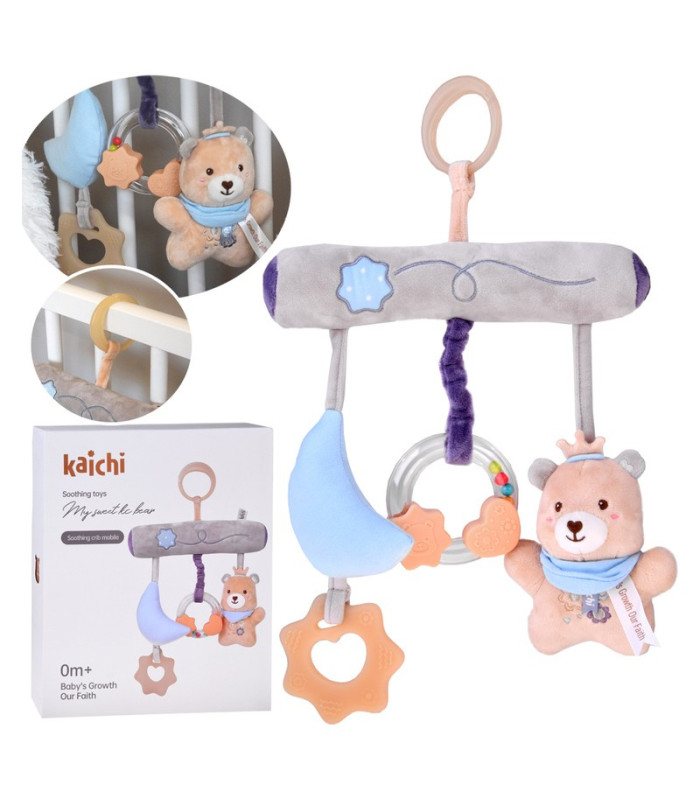 Lopšio pakabinamas žaislas su meškiuku ir kramtukais – dovana naujagimiui ZA5878
