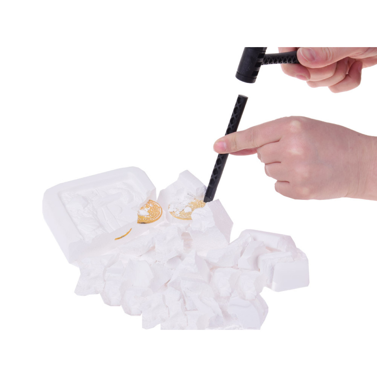 Inspireeriv mänguasi igale lapsele, kes tulevikus soovib saada arheoloogiks või aardekütiks. Mänguasi pakub põnevat kaevanduste simulatsiooni ja kindlasti köidab see last pikaks ajaks. Lapse ülesanne on haamri ja peitli abil leida järgmised peidetud aarded kipsivalust. Kuigi mäng on aeganõudev, premeerib see meid müntidega, mida hiljem uhkusega perele näidata. Kas oled valmis kullapalavikuks?