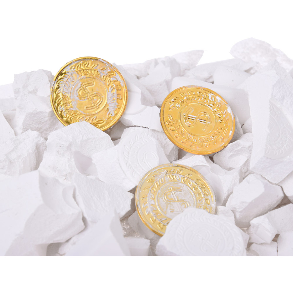 - kipsivalu, mis sisaldab kuldmünte (plastikust)