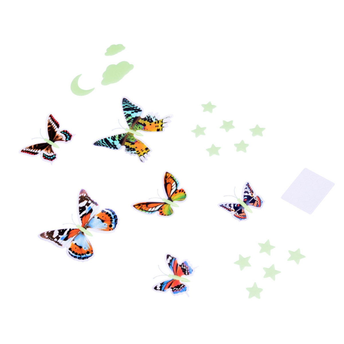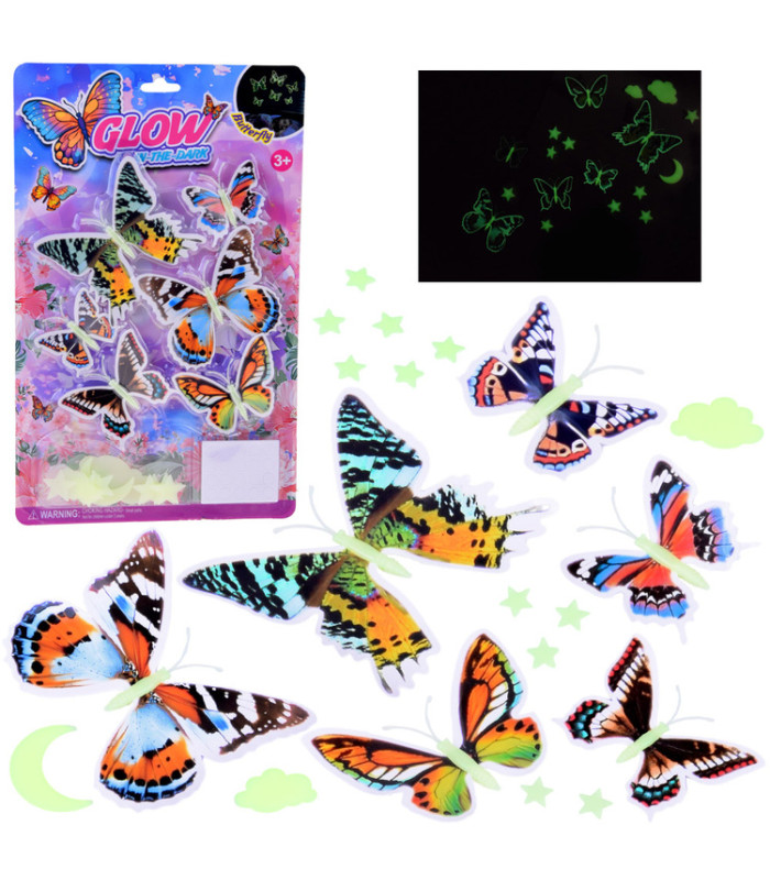 Lummavad fluorestsents liblikad ja tähed - helendavad kleebised ZA5681