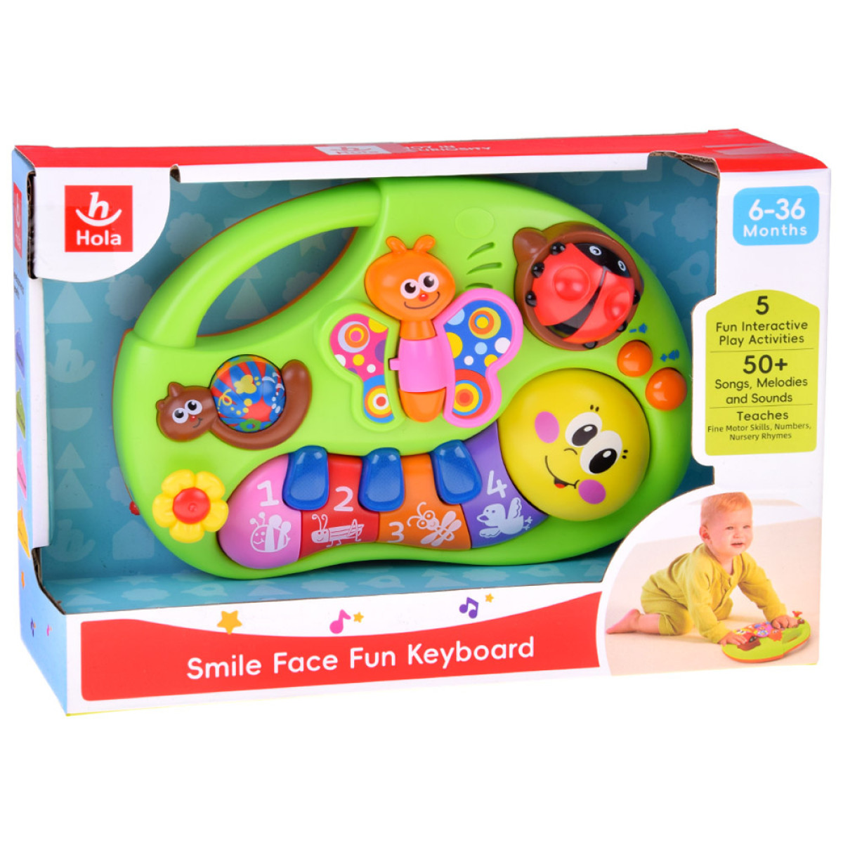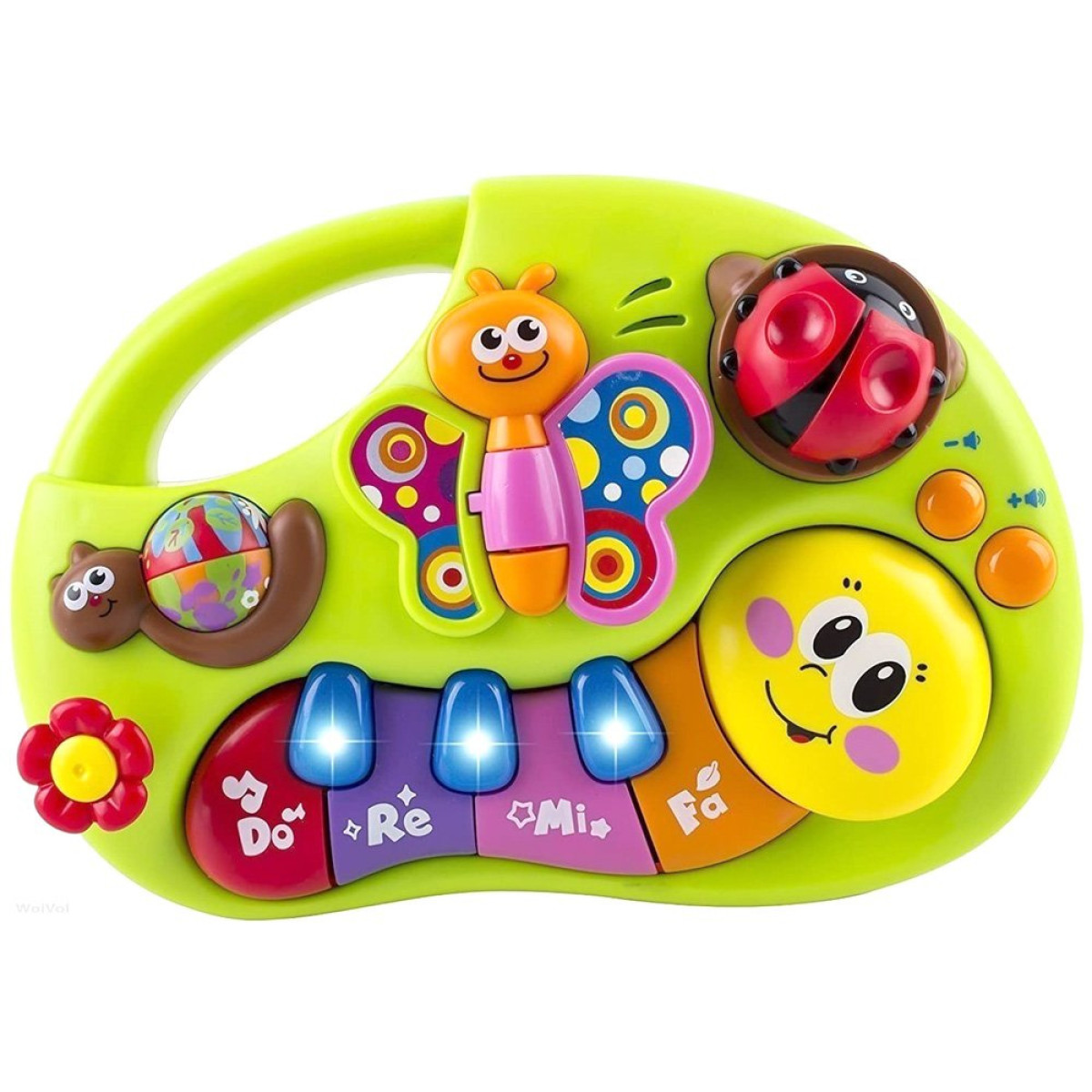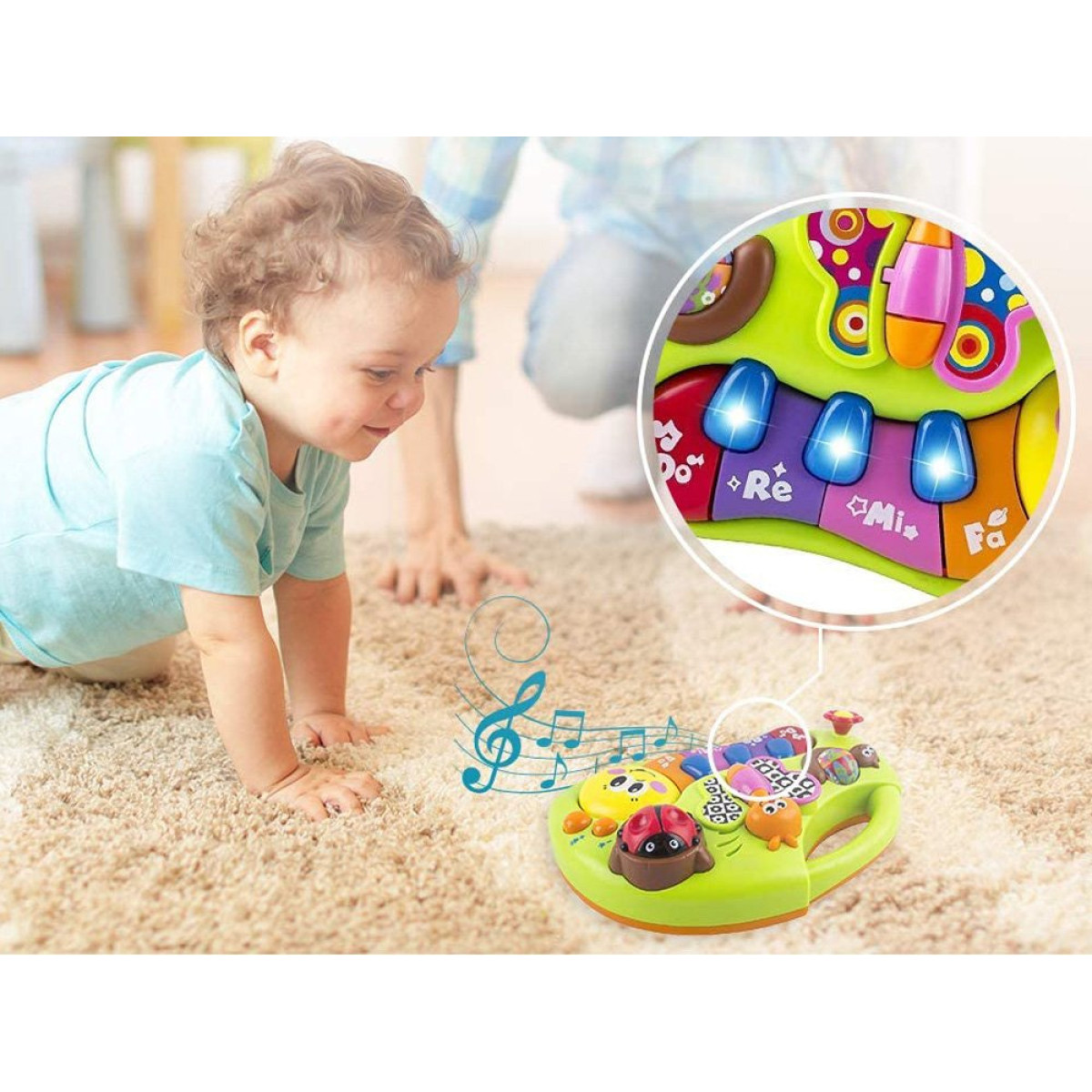 Iga kord on helid ja valgused erinevad. Värvilised klahvid tekitavad ka do, re, mi, fa noote ja vilkuvaid tulesid. Muusika ja laulud stimuleerivad lapse arengut mitmekesiselt.