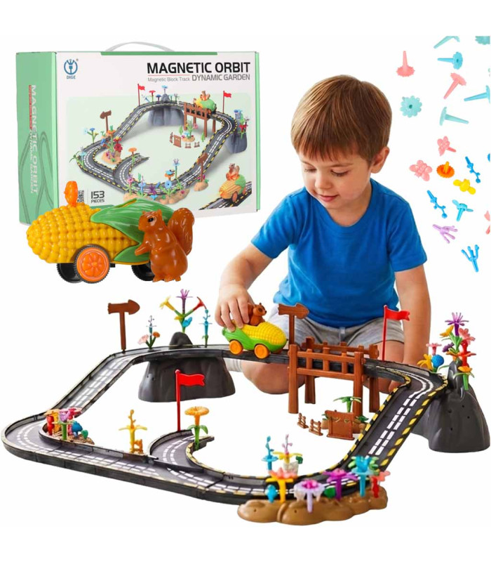 See magnetiliste klotside komplekt innustab noori loojaid mõtlema nagu tõelised insenerid. Magnetilised klotsid võimaldavad raja ehitamist koos kurvide, tõusude ja laskumistega, mis on ümbritsetud värvikireva taimestikuga, andes igale konstruktsioonile unikaalse iseloomu. Magnetilised osad ühenduvad kindlalt, võimaldades muuta raja paigutust kiiresti ja vaevata. Lisaliitmikud altpoolt tugevdavad kogu konstruktsiooni, muutes raja veelgi stabiilsemaks, isegi keerulise paigutuse puhul.