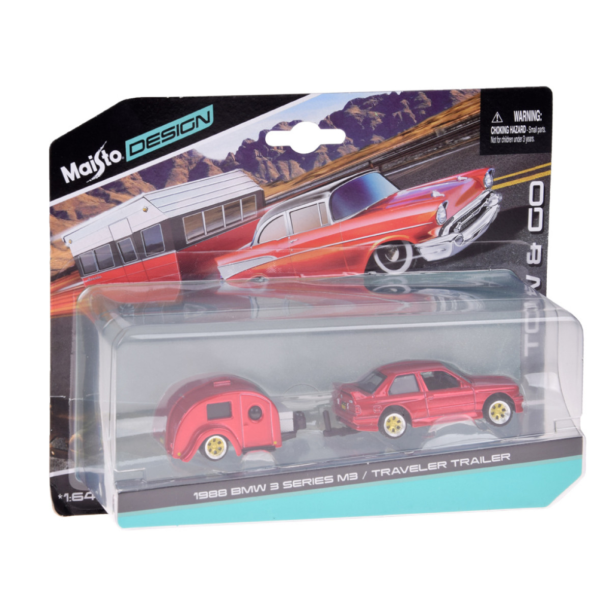 Maisto litsentseeritud metallist auto 1:64 – BMW 3 Series M3 1988 ja haagissuvila