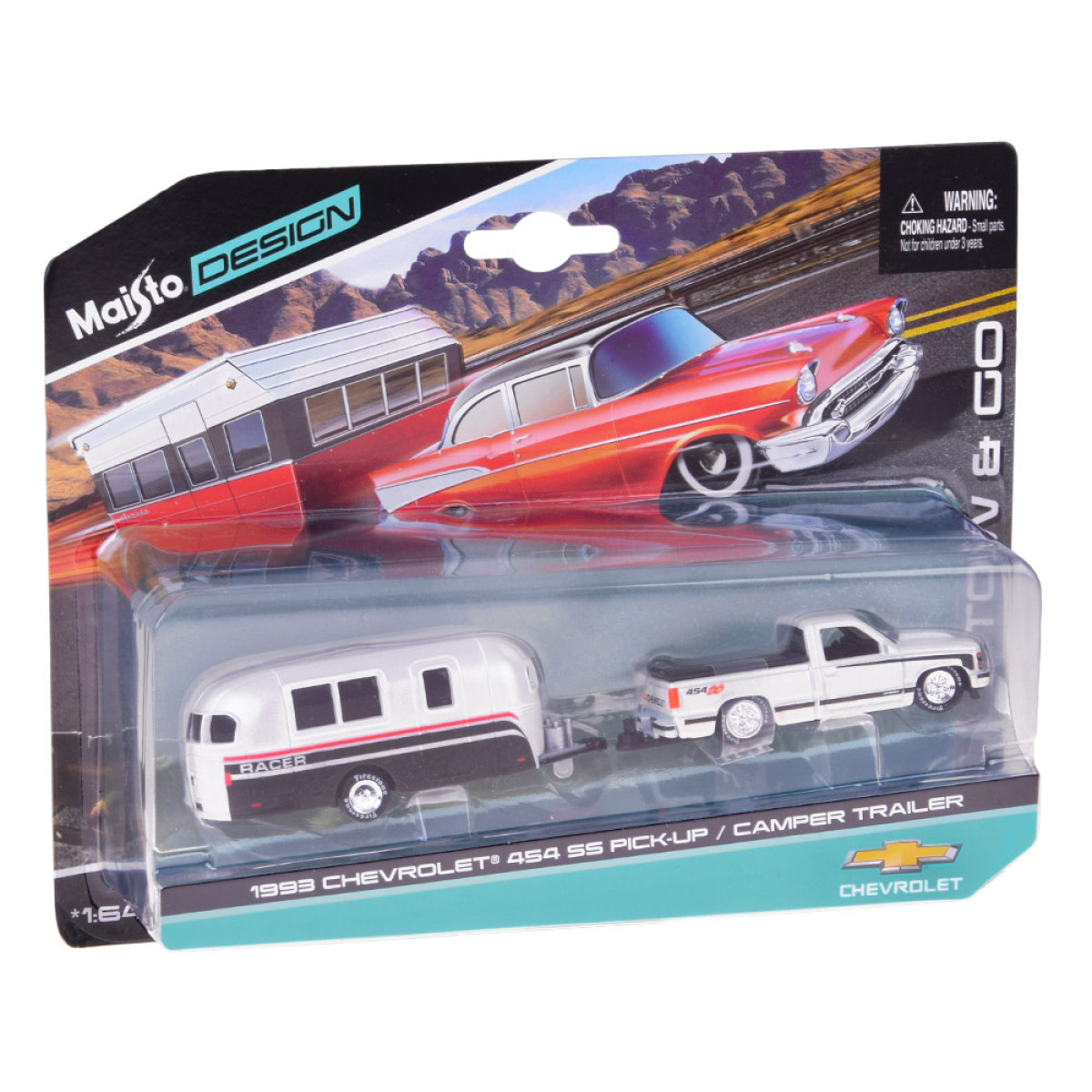 See eriline komplekt on tõeline maiuspala kollektsionääridele ja autohuvilistele. Komplekti kuulub legendaarne Chevrolet 454 SS Pick-up aastast 1993 mõõtkavas 1:64 ja funktsionaalne haagissuvila. Mõlemad mudelid on loodud erakordse detailitäpsusega, täpselt jäljendades originaalsõidukite iseloomulikku joont ja proportsioone.