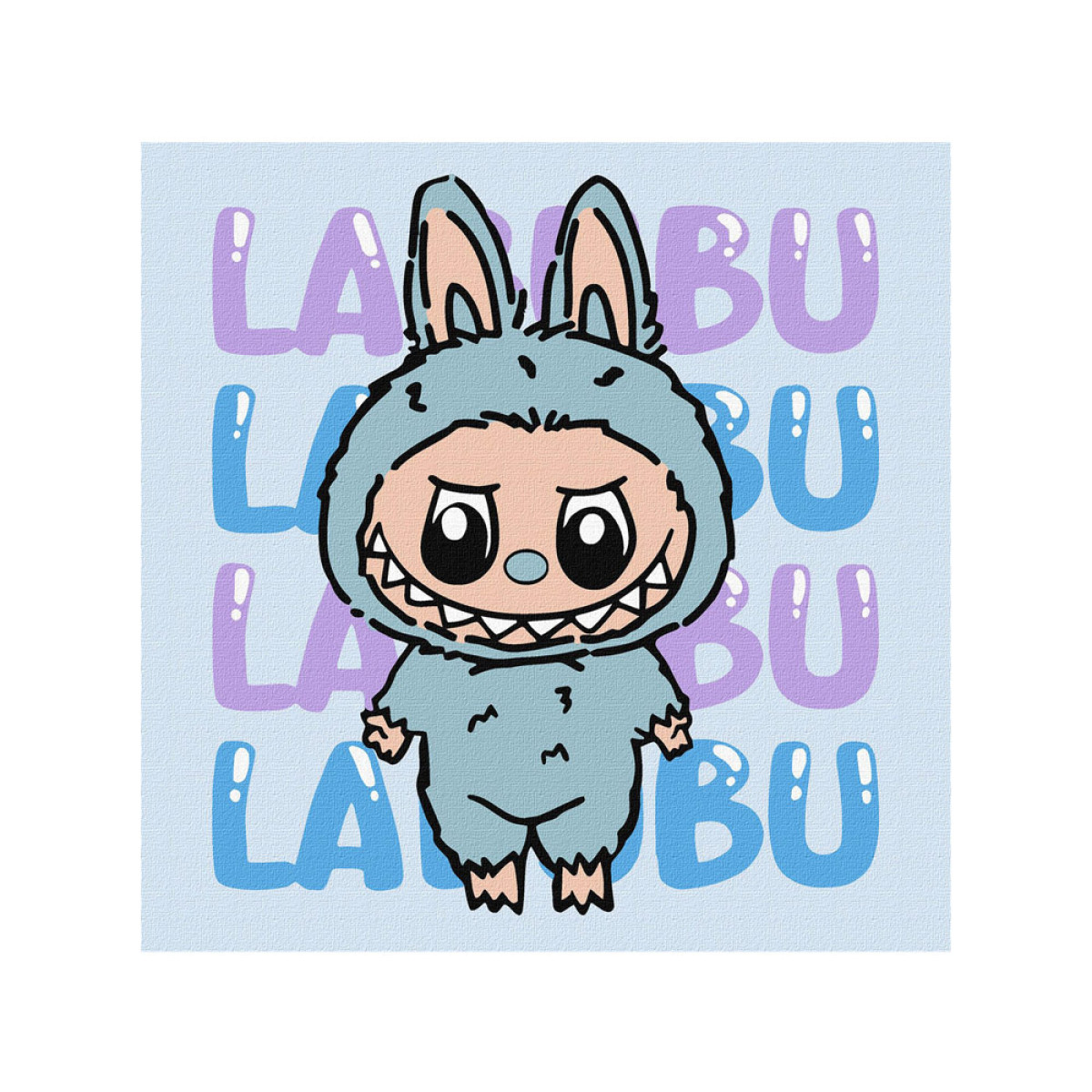 - Valmis maalilõuend Labubu maskoti trükiga, jagatud nummerdatud aladeks