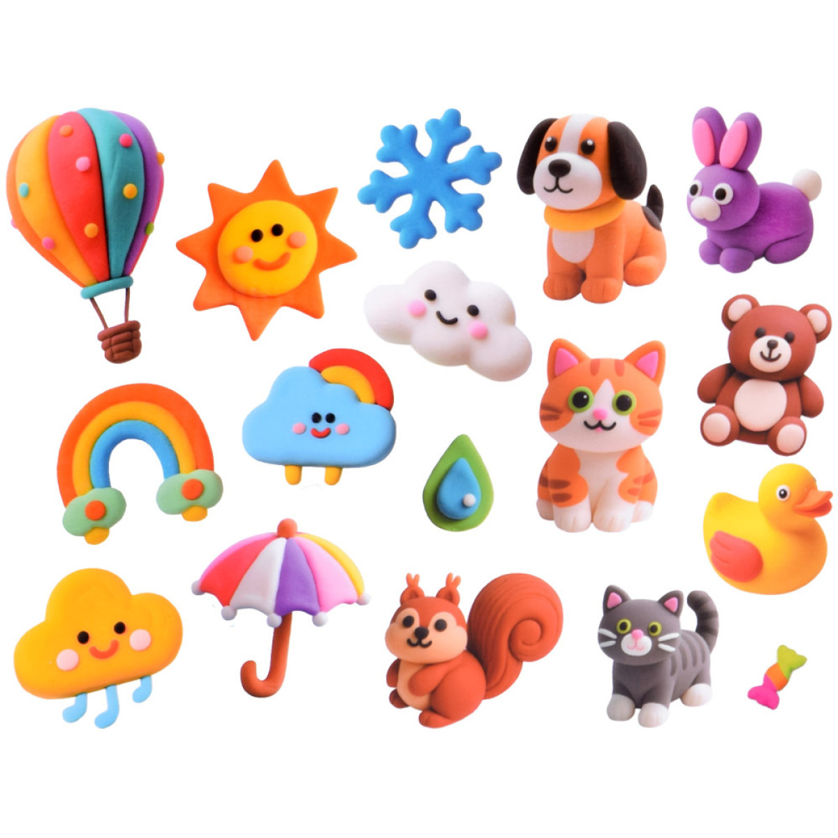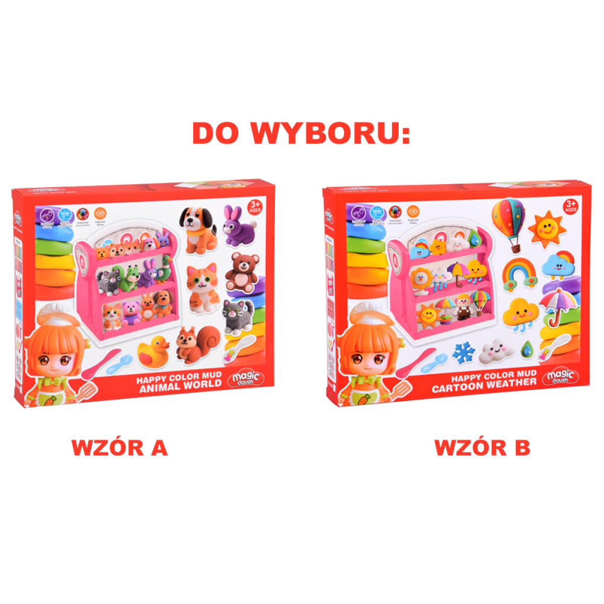 loov plastiliinikomplekt kutsub last looma oma värvilist maailma, kus valmivad loomakesed ja ilmaga seotud kujundid. Kui lapsele meeldib voolida, mudida ja kujundeid teha, on see komplekt suurepärane valik koduseks loovaks mänguks. Värviline plastiliin aitab luua palju vahvaid kujusid ning spetsiaalsed vormid teevad armsate figuuride valmistamise lihtsaks.