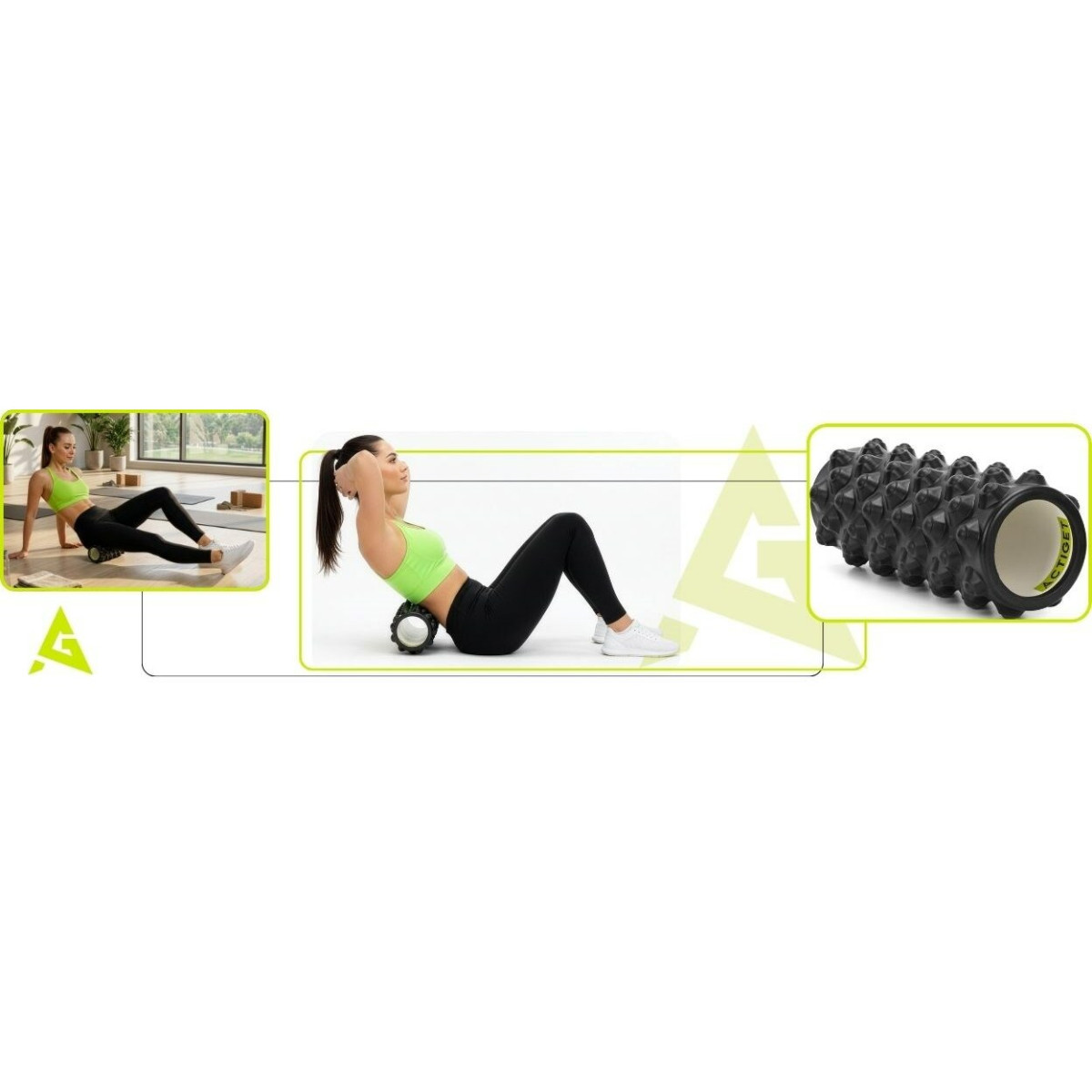 Kaubamärk: Actiget® Seeria: universaalne seeria Värv: must Materjal: EVA vaht, PVC Kaal: 725 g Maksimaalne kasutaja kaal: 100 kg Keskmise kõvadusega rull (50° Shore A) Mõõtmed: Pikkus: 33 cm Välimine läbimõõt: 13 cm Sisemine läbimõõt: 8 cm Vahu paksus: 2,5 cm Lisainfo: Tootel on Actiget® logo